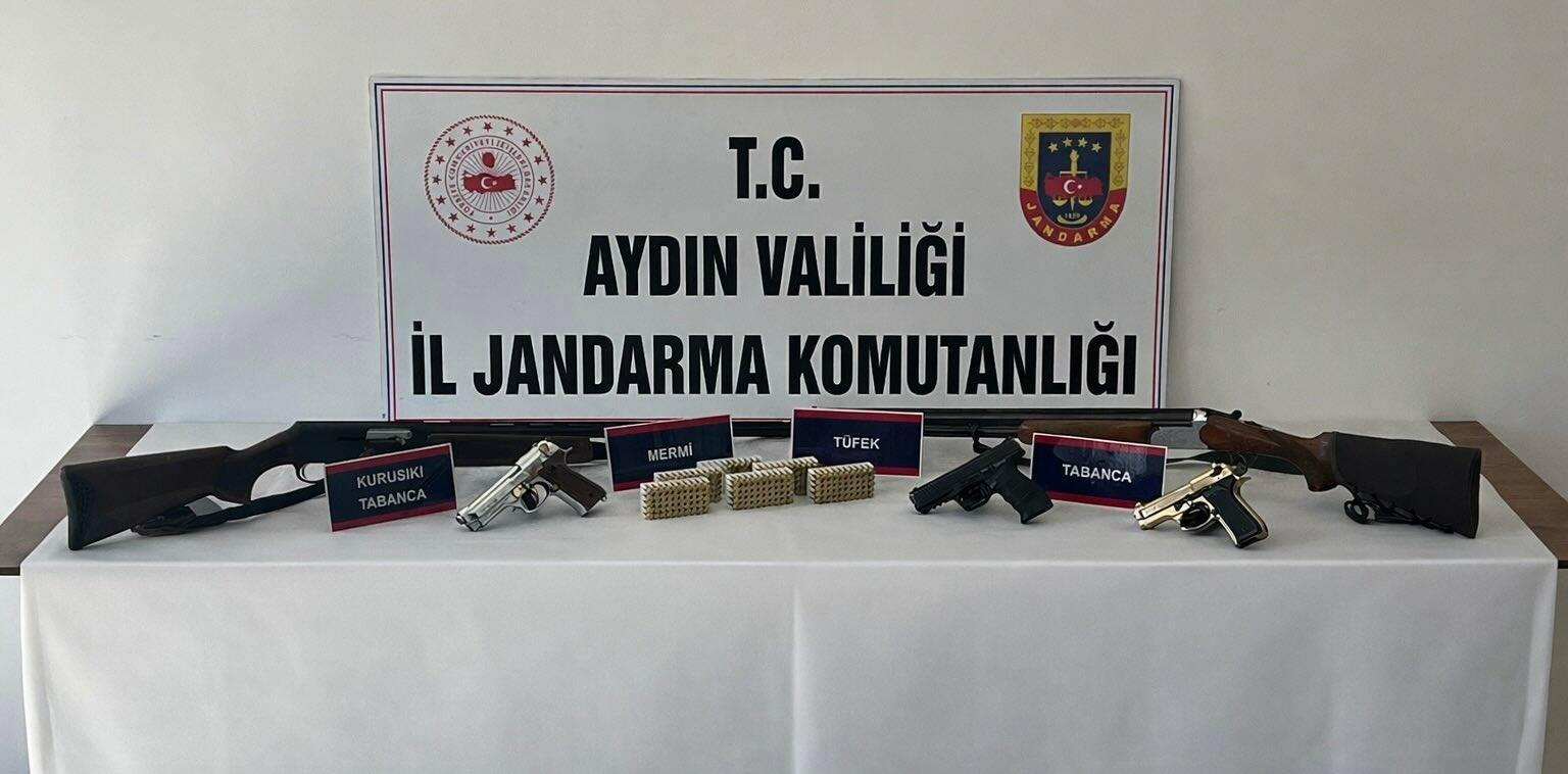 Aydın İl Jandarma Komutanlığı'na bağlı Didim İlçe Jandarma Komutanlığı ekipleri, ilçeye bağlı Akyeniköy Mahallesi'nde iki ayrı adreste ruhsatsız silahların bulunduğu bilgisine ulaştı. İki adrese eş zamanlı baskın yapan ekipler, 1 yarı otomatik av tüfeği, 1 ruhsatsız tabanca, 3 şarjör, 2 kurusıkı tabanca, 1 havalı tüfek, 289 adet 9 mm çapında fişek, 31 adet av tüfeği kartuşu ele geçirirken, M.A. (53) ve M.A. (36)'yı gözaltına aldı.