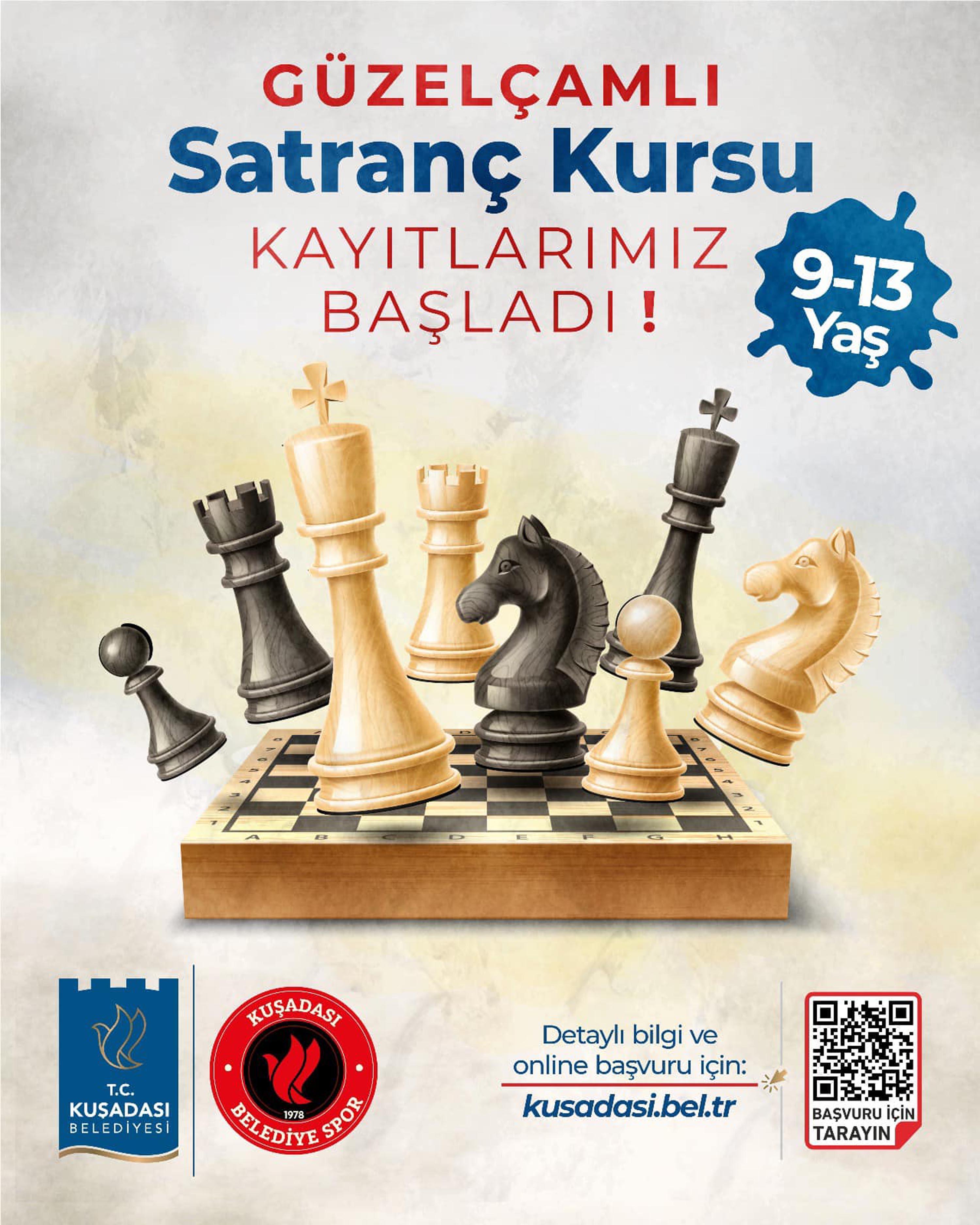 KUŞADASI, (Aydın) (DHA)-AYDIN Kuşadası Belediyesi tarafından 9-13 yaş arasındaki çocukların çok yönlü düşünme becerilerinin gelişimine katkı sağlamak amacıyla Güzelçamlı Mahallesi'nde ücretsiz açılacak olan satranç kursu için kayıtlar başladı.