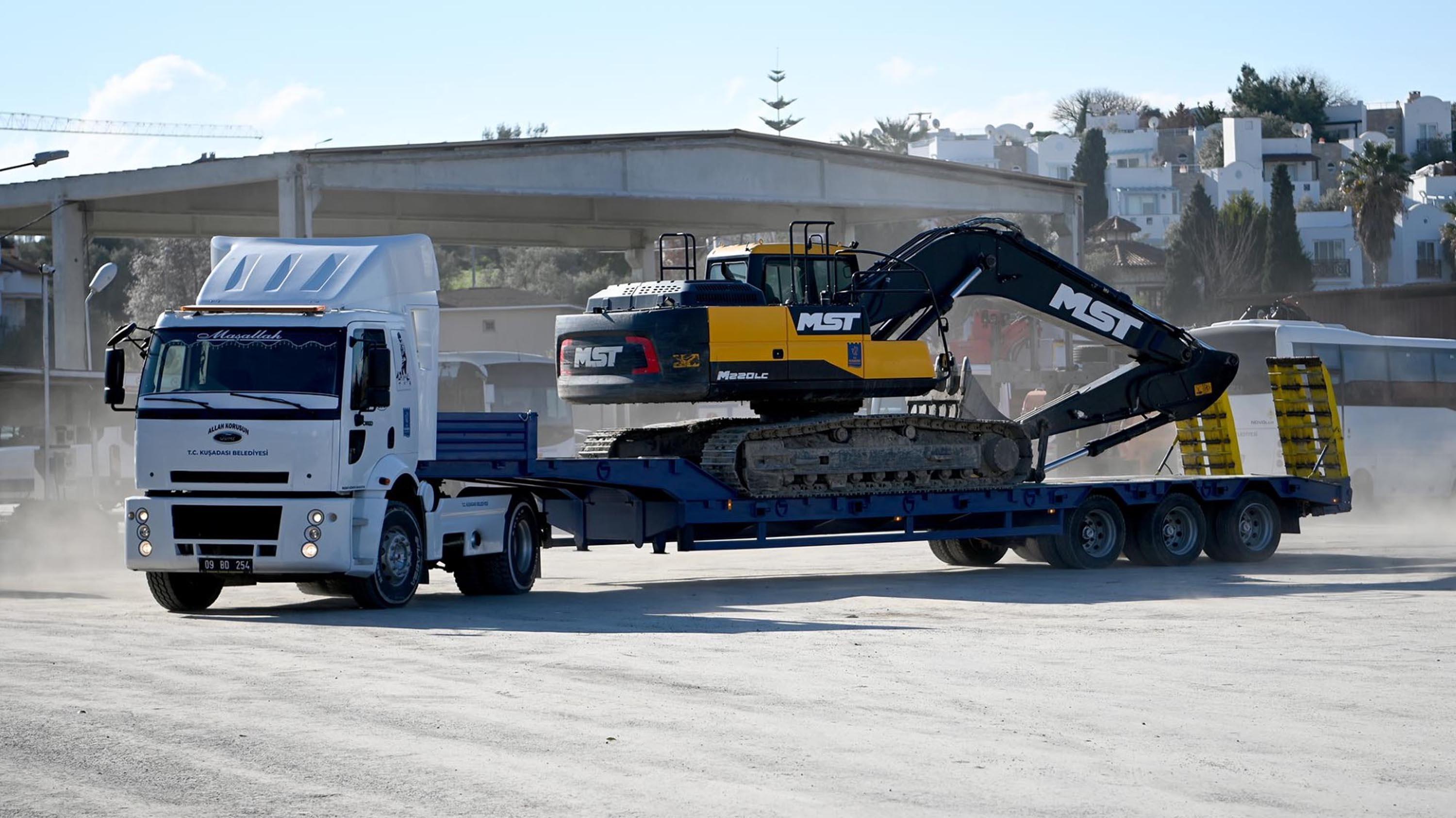 Kuşadası Belediyesi, kentin tüm mahallelerine eşit ve kaliteli hizmet götürmek amacıyla günün 24 saati çalışıyor. Yol yapım, bakım ve onarım işlerinin yanı sıra kente yeni yeşil alan ve parklar kazandırmak için de yoğun çaba sarf eden ekipler çoğu zaman silindir, ekskavatör, greyder ve buldozer gibi iş makinelerine de ihtiyaç duyuyor. Normal trafiğe çıkışı yasak olan bu iş makinelerinin de bir yerden başka bir yere nakli için kiralanan çekicilerin yıllık maliyetleri, Kuşadası Belediyesi'nin bütçesinde önemli bir kalem tutuyor.