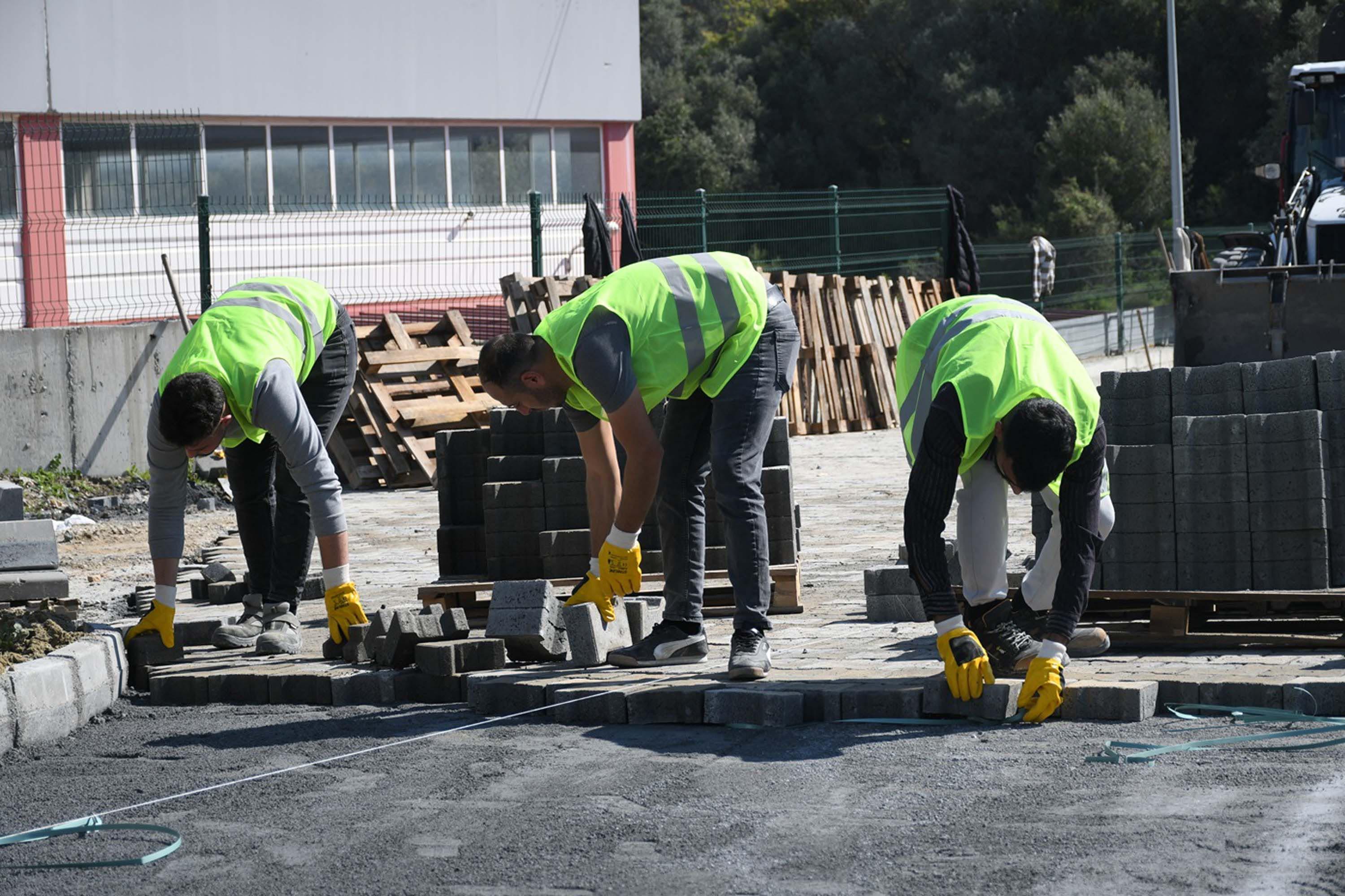 Kuşadası'nda bir sokağa daha kilit parke taşı döşendi