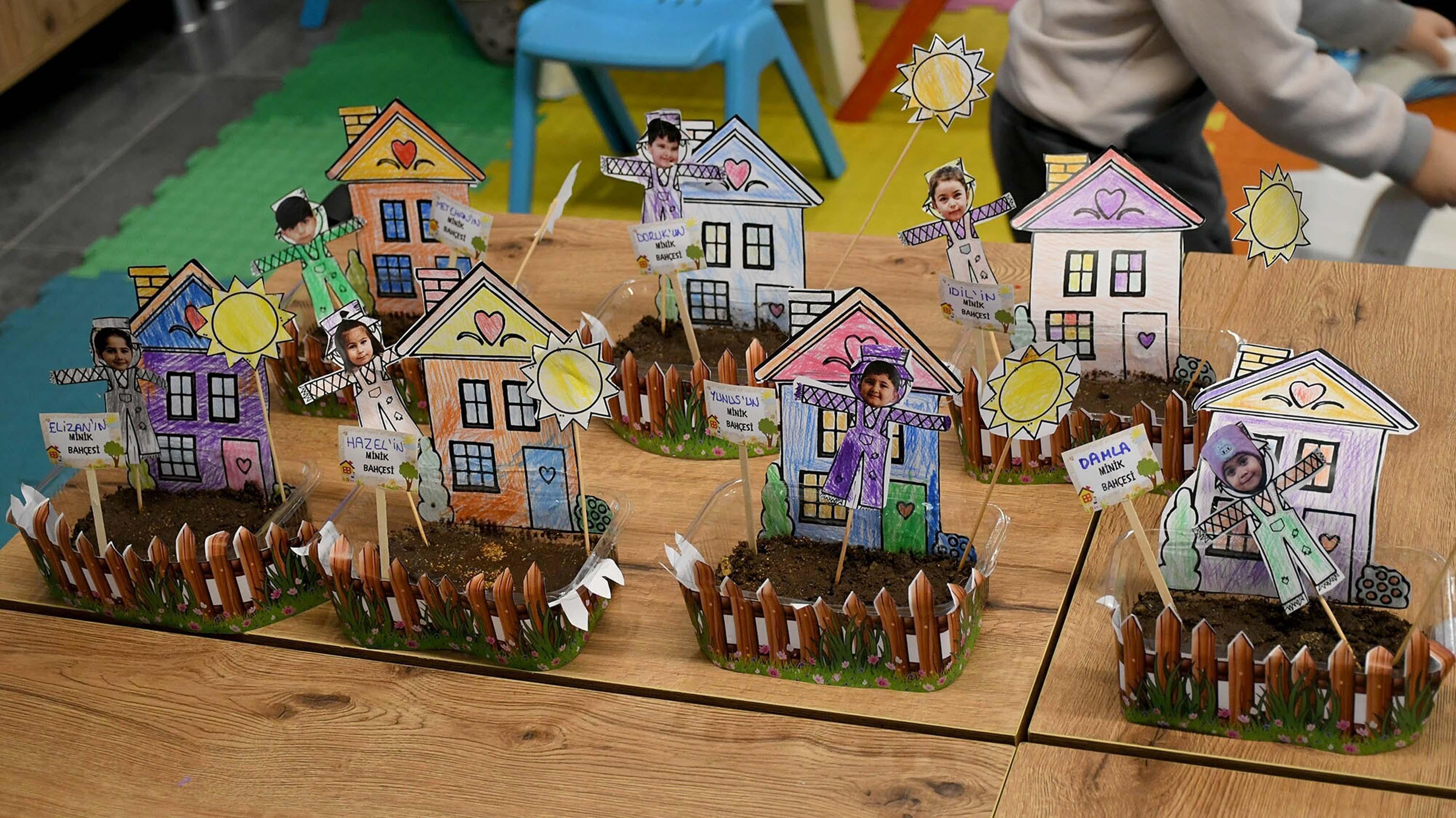 Yaklaşık 1 saat süren etkinlikte çocuklar oyun hamurlarından çiçekler yaptı. Daha sonra resim kağıtlarına hayallerindeki evi çizip, renkli kalemlerle boyadı. Kağıttan evlerini içerisinde verimli toprağın bulunduğu plastik kaplara yerleştiren minikler, bahçe olarak tasarladıkları alana da çim ve çeşitli tohumlar ekti. Uygulamalı etkinlik sayesinde çocuklar, toprağa dokunarak tarımsal üretim sürecini deneyimleme fırsatı buldu.