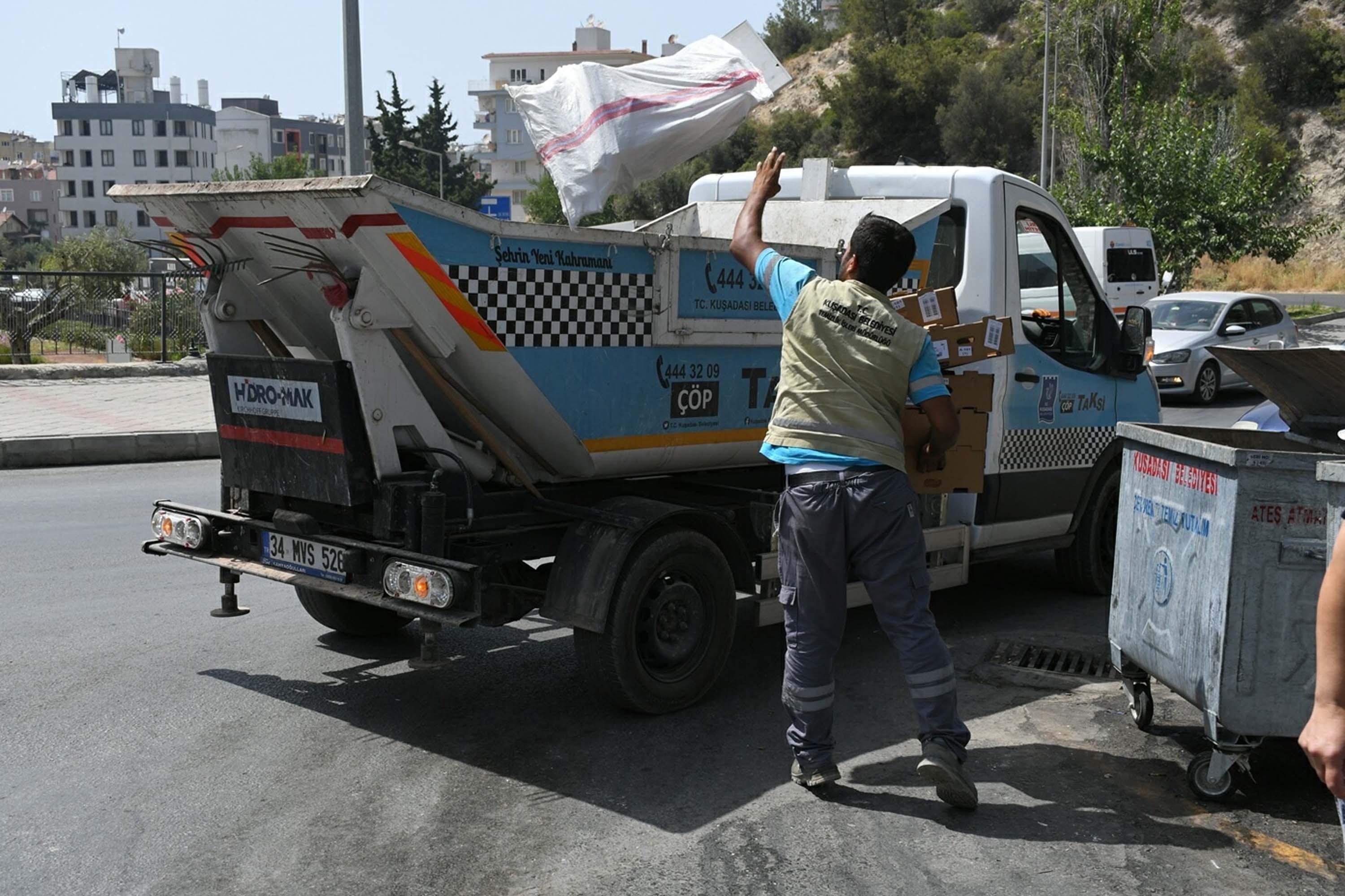 Kuşadası Belediyesi Temizlik İşleri Müdürlüğü ekipleri, mevcut hizmetlerin yanı sıra uygulamaya konulan yeni yöntemlerle kentin hijyen seviyesini artırmayı hedefliyor. Bu kapsamda temizlik seferberliği başlatıldı. Bu çerçevede hayata geçirilen 'çöp çıkarma saatleri' uygulaması ile sıcak havalarda çöp konteynerlerinde oluşan koku ve çevre kirliliğinin azaltılması amaçlandı. Uygulama ile konteynerlerin gün boyu dolu kalması engellenirken, daha düzenli ve sağlıklı bir çöp toplama süreci de oluşturuluyor. Geri dönüşüm konusunda da adımlar atan belediye tarafından, ilçenin farklı noktalarına geri dönüşüm üniteleri yerleştirildi. Vatandaşların atıklarını ayrıştırarak bu noktalara bırakmaları teşvik ediliyor. Böylelikle hem çevre bilincinin artırılması hem de geri dönüşüm sürecine katkı sağlanması hedefleniyor.