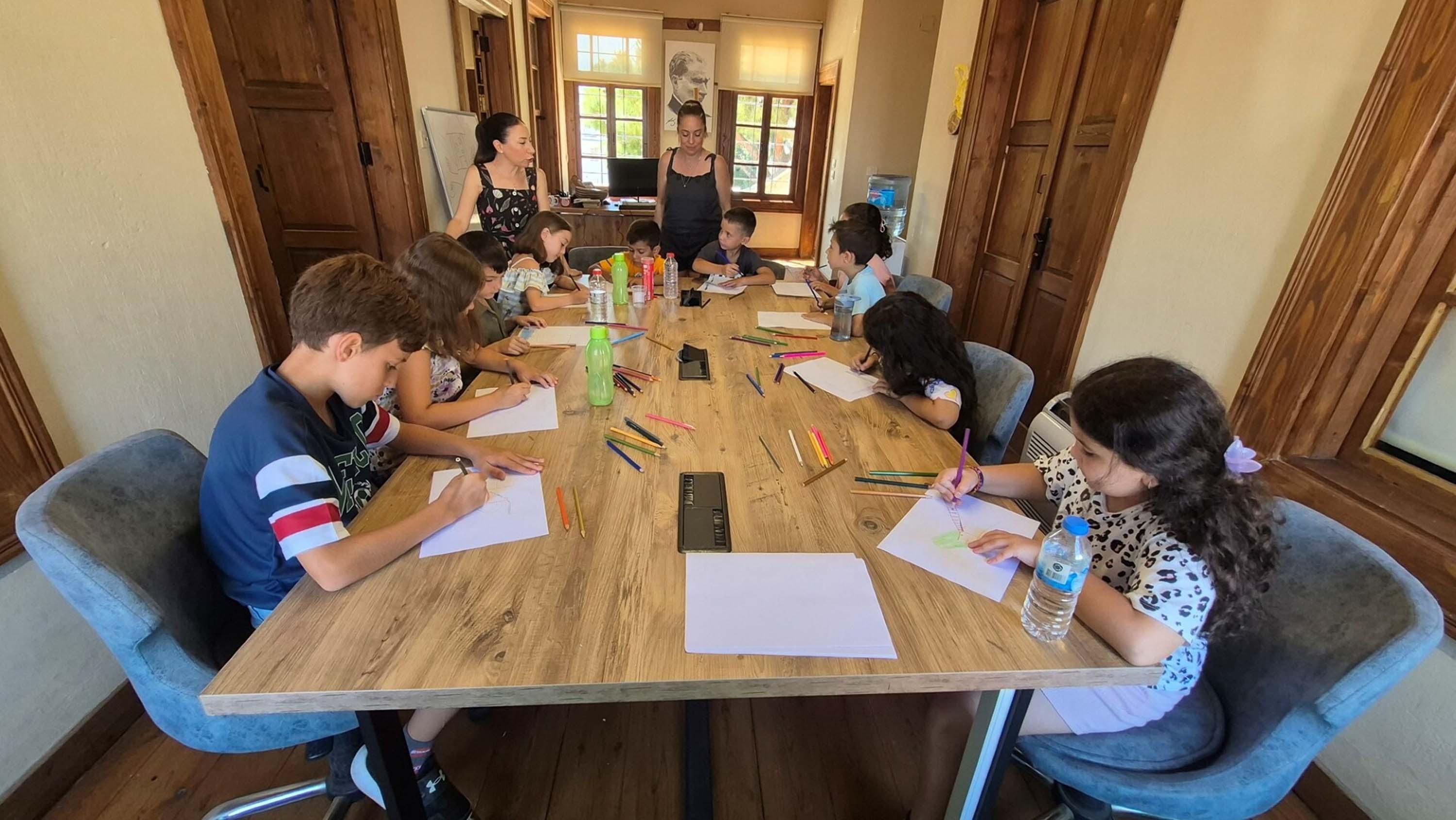KUŞADASI (Aydın), (DHA)-AYDIN'ın Kuşadası ilçesindeki SEYAKMER Dijital ve Materyal Çocuk Kütüphanesi'nde temmuz ayı boyunca her pazartesi günü düzenlenecek olan '1 Kitap 1 Hareket' başlıklı atölye çalışmasının ilki gerçekleşti. Etkinlikte, çocuklar önce eğitmenler eşliğinde bir hikayeyi birlikte okuyup ardından çeşitli çizim ve canlandırmalarla hayal dünyalarının kapılarını araladı.