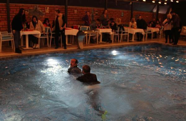 Türkücü Mustafa Keser, depremzedelere moral gecesinde havuza düştü