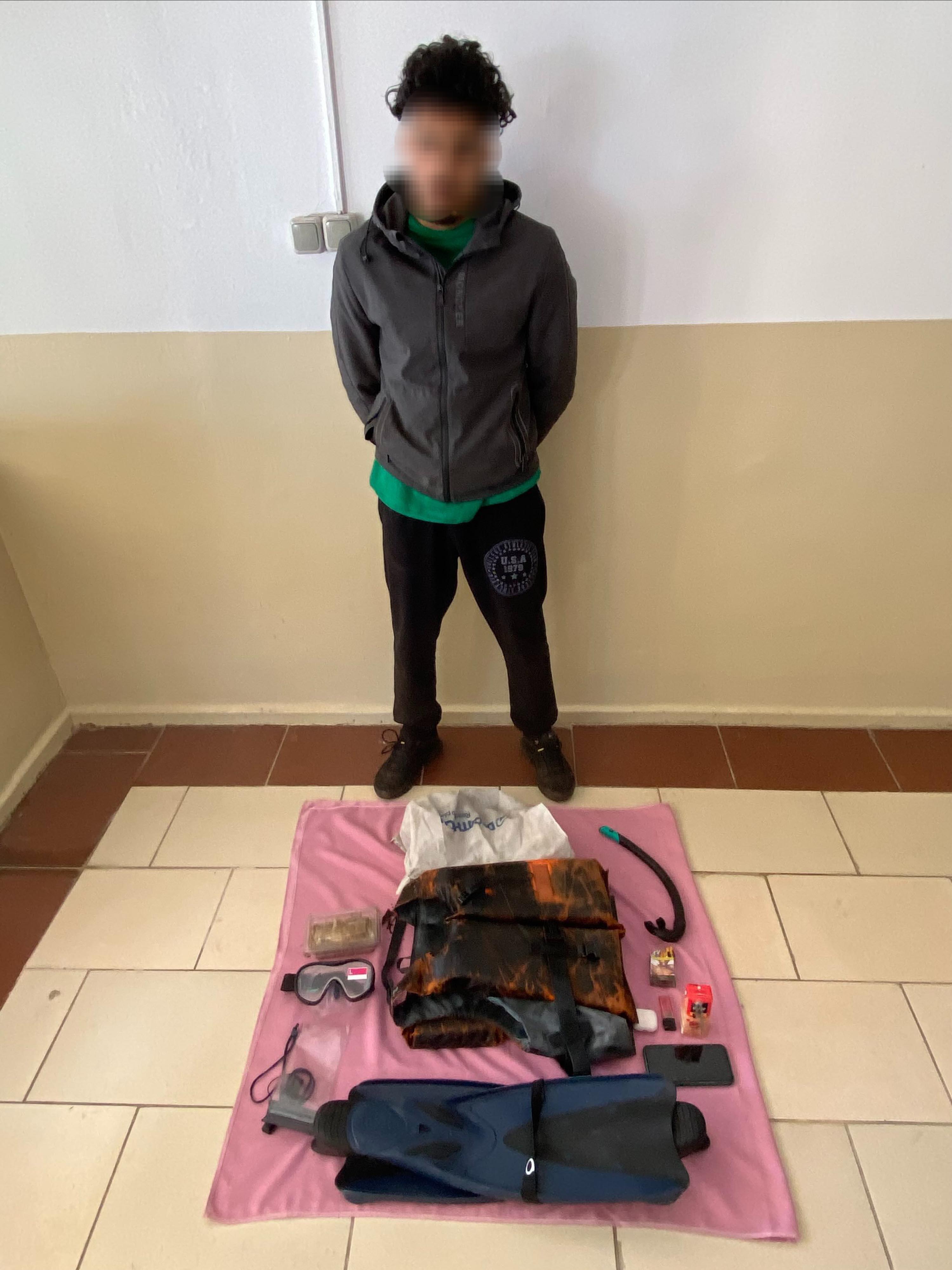 Kuşadası İlçe Jandarma Komutanlığı ekipleri, Dilek Yarımadası Milli Parkı içerisinden yüzerek Yunanistan'ın Sisam Adası'na geçmeye çalışan 1 kaçak göçmeni yakalandı. Kaçak göçmenin yanındaki palet, şnorkel, can yeleği, deniz gözlüğü gibi malzemelere el konuldu. Kaçak göçmenin işlemlerin ardından Aydın Geri Gönderme Merkezine teslim edileceği bildirildi.(DHA)