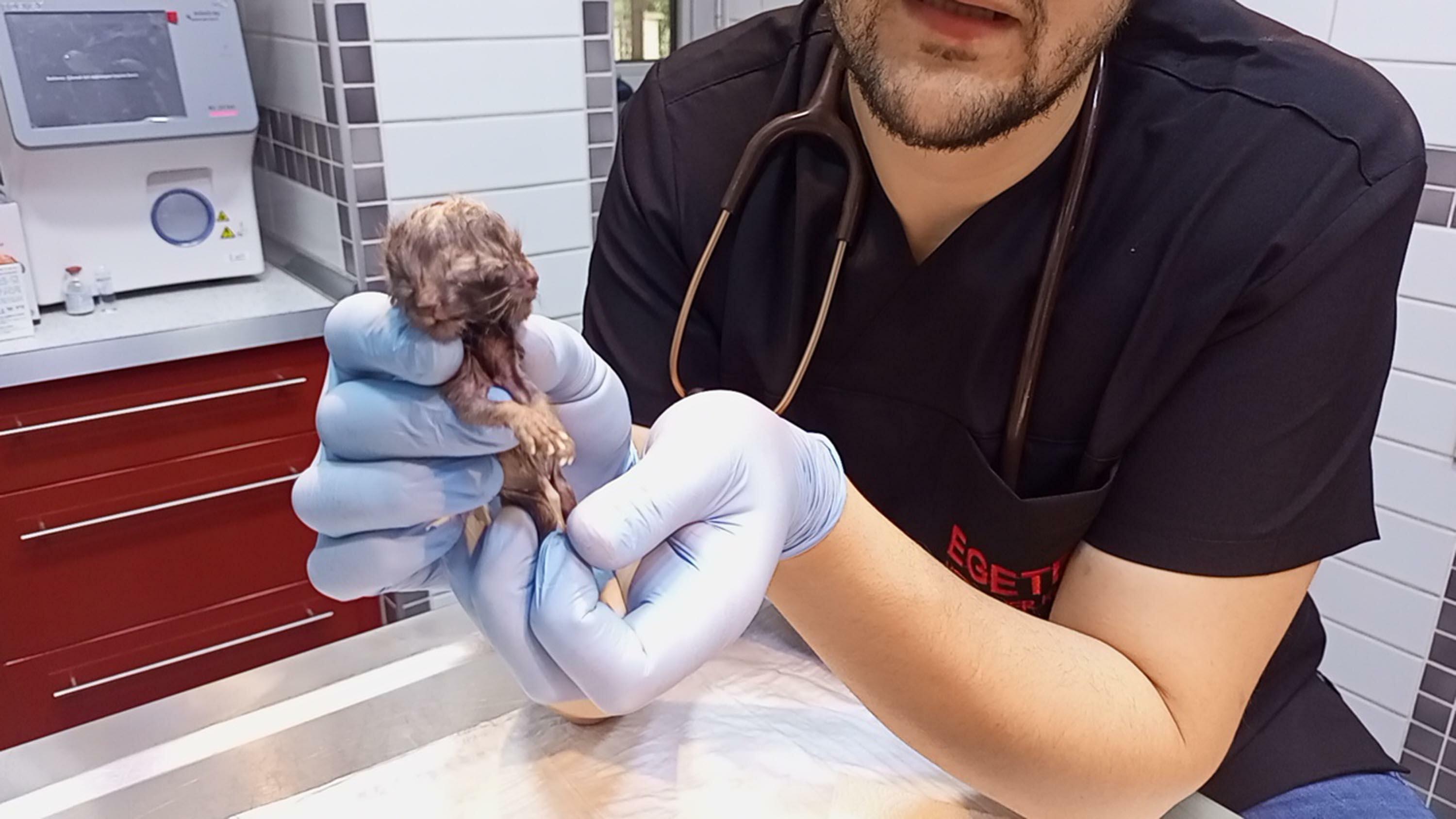 Karnındaki çift başlı ölü yavru sezaryenle alınan kedinin diğer 3 yavrusu kurtarıldı