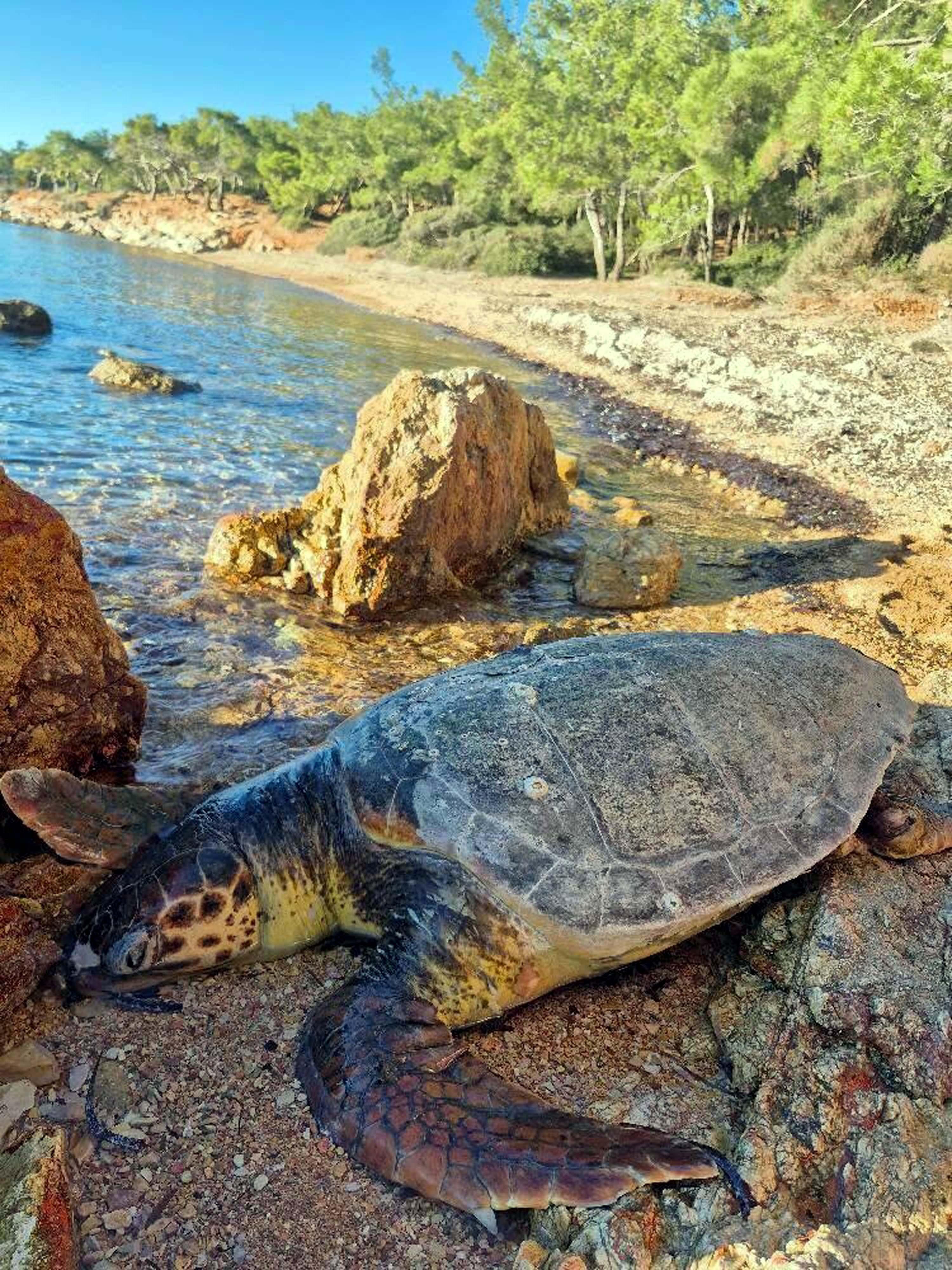 Cunda Adası’ndaki Ortunç Koyu’nda dün gezinti yapan Ahmet Kabataş, kıyıya vurmuş ölü deniz kaplumbağası olduğunu fark etti. Kabataş, durumu Ayvalık İlçe Tarım ve Orman Müdürlüğü yetkililerine bildirdi. Sol arka bacağında büyük bir yara olan ve iç organları dışına çıkmış olan deniz kaplumbağası, ekipler tarafından bulunduğu yerden alınarak, incelemek üzere götürüldü. Deniz kaplumbağasının gemi pervanesine takılıp, yaralanmış olabileceği değerlendiriliyor.
