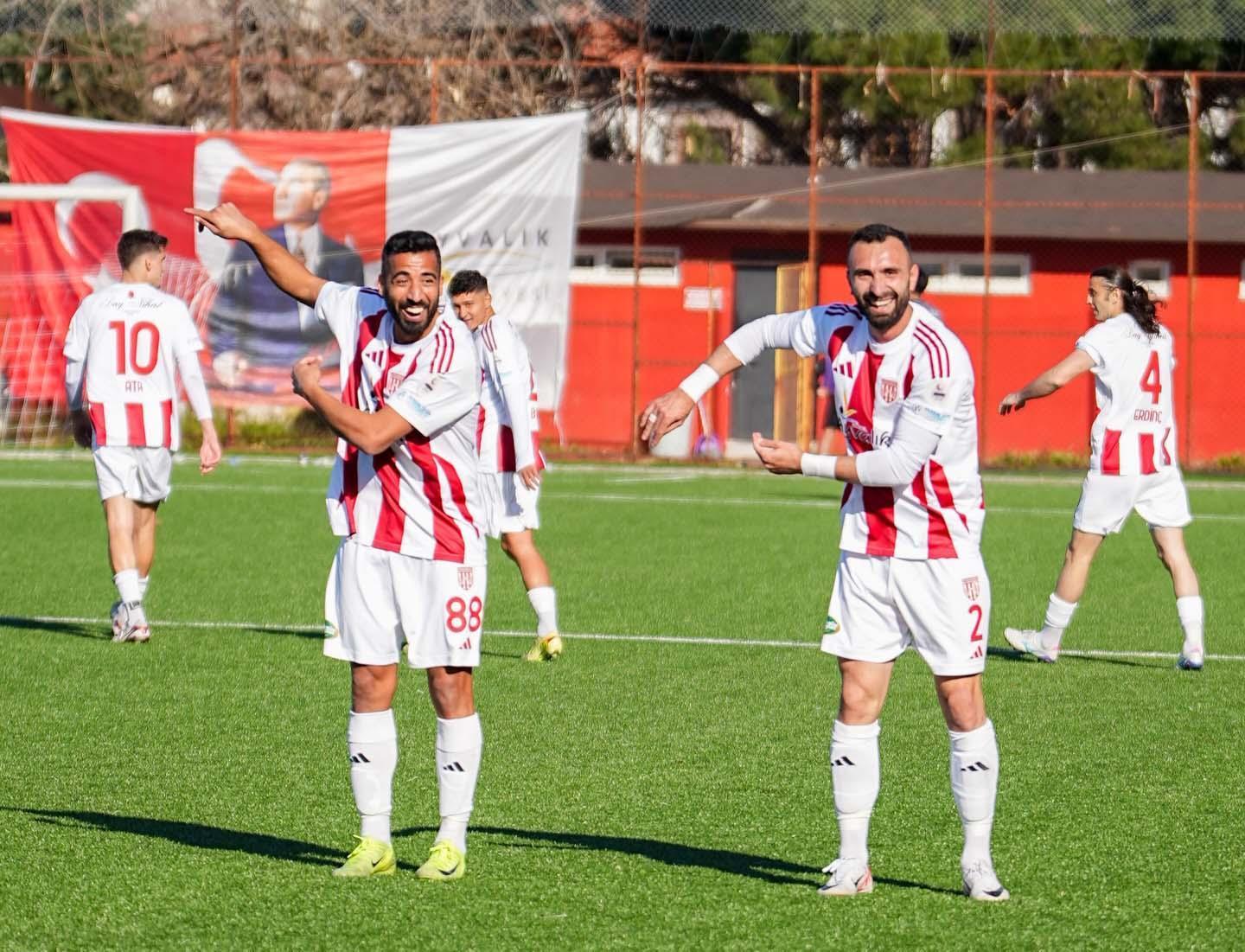 AYVALIK, (DHA)- TFF 3'üncü Lig 4'üncü Grup'ta evinde Tire 2021 FK'yı 2-1 mağlup eden Ayvalıkgücü Belediyespor, galibiyet serisini 3 maça çıkardı. Kırmızı-beyazlılarda ikinci yarıda rakip fileleri sarsan stoper Batuhan Akyüz gol sayısını 8'e çıkarırken, santrfor Yağız Haydar Doğan 6 gole ulaştı. Grupta 52 puana ulaşıp 4'üncü sıradaki yerini koruyan Ayvalık temsilcisi iç sahada ise 7'de 7 yaptı. Ligde önümüzdeki hafta 1 puan ve 1 basamak üstünde yer alan Karşıyaka'ya konuk olacak Ayvalıkgücü Belediyespor, sezonun ilk devresinde evinde 0-0 berabere kaldığı rakibini bu kez yenerek 3'üncü basamağa tırmanmayı hedefliyor.