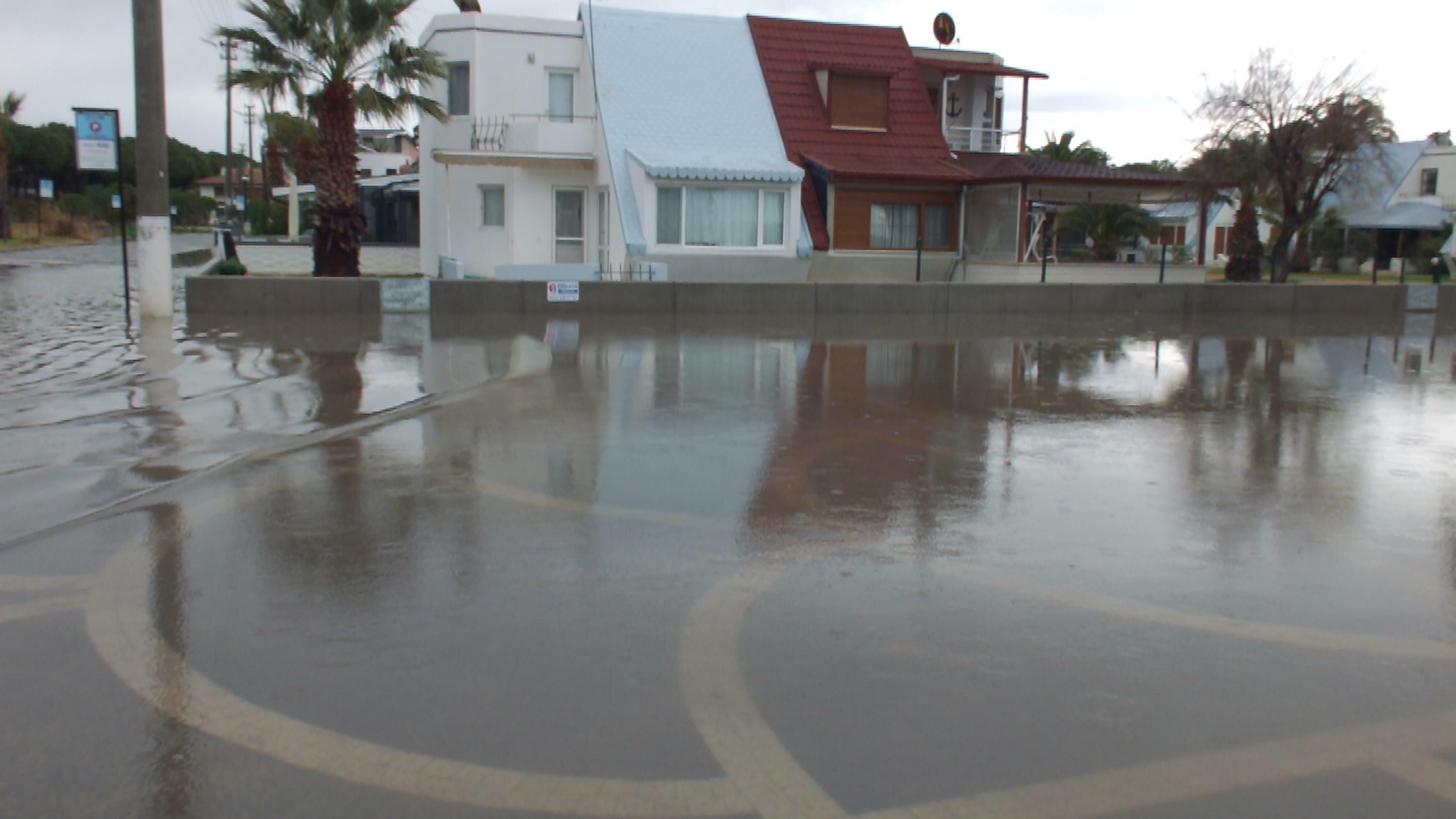 Burhaniye ilçesinde hafta boyunca etkili olan ve zaman zaman şiddetini artıran sağanak hayatı olumsuz etkiledi. İlçede; cadde ve sokaklar göle döndü, mazgallar tıkandı. Özellikle alçak kesimlerdeki evlerin bodrum katlarını ve bahçelerini su bastı. Sürücüler, araçları ile suyla dolu yollarda ilerlemekte güçlük çekti. Belediye ekipleri bölgede suların tahliyesi için çalışma başlattı. Öte yandan, Ören Sahili’nde Karınca Deresi'nden gelen çamurlu denize karışması sonucu deniz suyu kahverengiye büründü. (DHA)