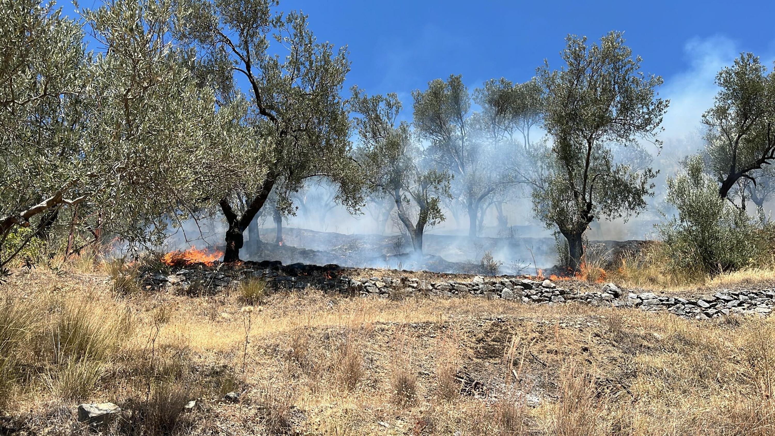 Edremit ilçesine bağlı Güre-Çamlıbel Mahallesi'ndeki zeytin ağaçlarının bulunduğu tarım arazisinde, saat 13.00 sıralarında yangın çıktı. Alevler kısa sürede büyüdü. İhbarla bölgeye 7 itfaiye aracı ile Balıkesir Orman Bölge Müdürlüğü'ne ait 4 uçak, 3 arazöz sevk edildi. Edremit İlçe Hizmetleri Daire Başkanlığı, Balıkesir Su ve Kanalizasyon İdaresi (BASKİ) ve Edremit Belediyesi'ne ait 1'er su ikmal aracı da söndürme çalışmalarına destek verdi. Alevler, havadan ve karadan 2 saatlik müdahale ile saat 15.00 itibariyle kontrol altına alındı. Yangının çıkış nedeni araştırılırken, bölgede soğutma çalışmaları sürüyor. (DHA)