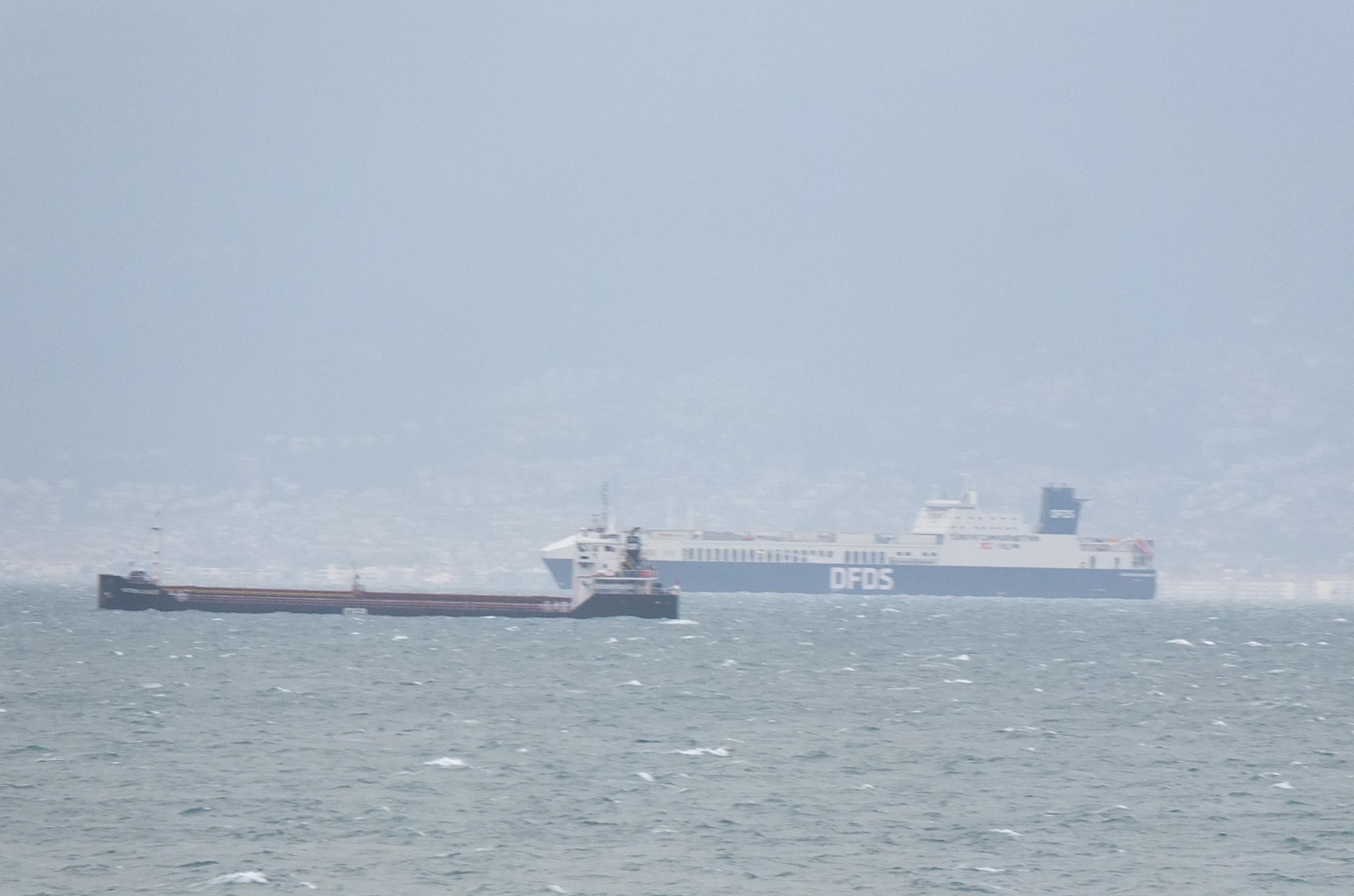 Yük gemileri, fırtına nedeniyle Edremit Körfezi'ne demirledi