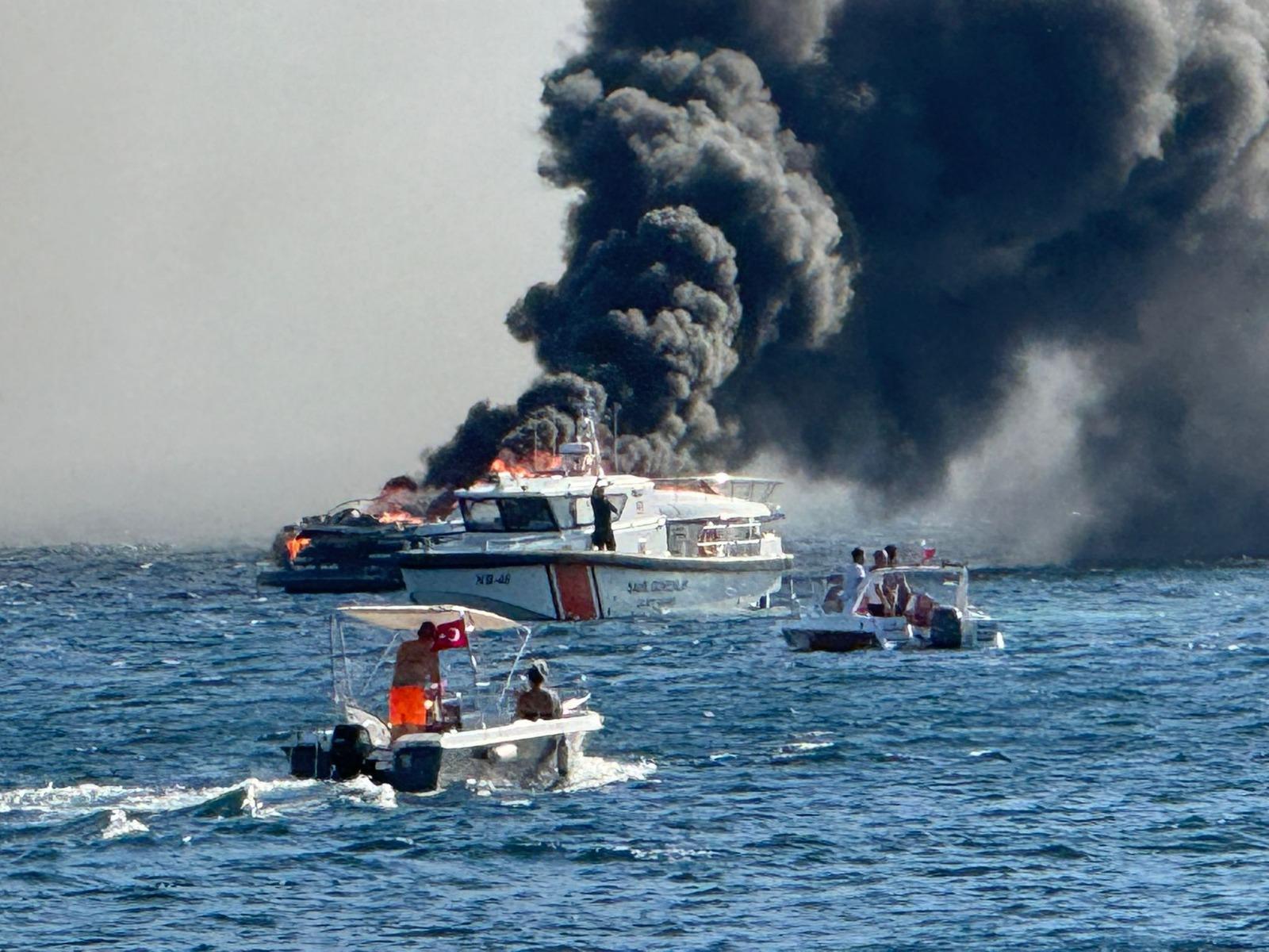 Erdek'te 15 metrelik 'ILLUSION' isimli yat alev alev yandı; 4 kişi kurtarıldı