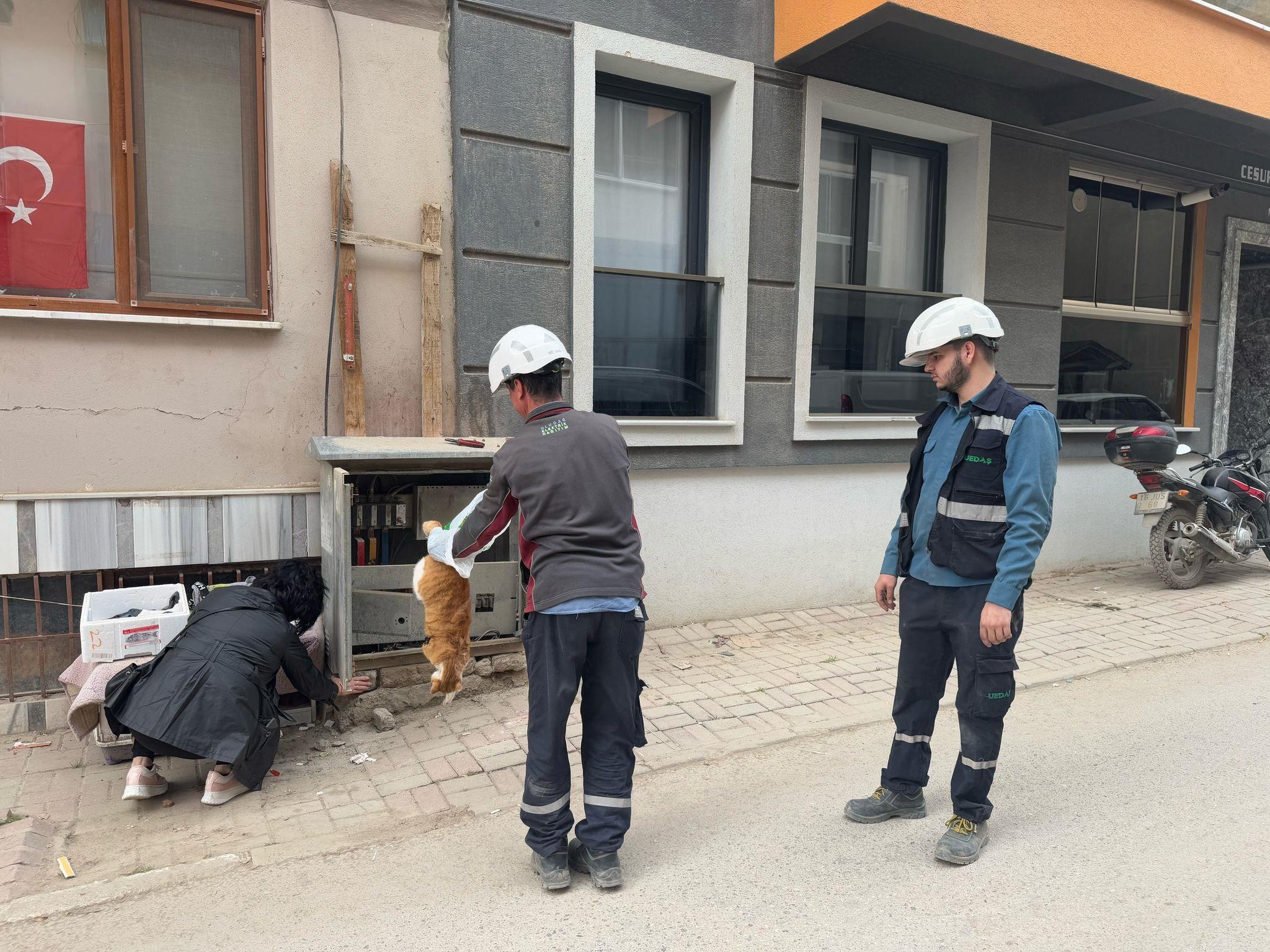 Olay, saat 15.00 sıralarında Erdek ilçesi Yalı Mahallesi, İsmail Baytar Hakkı Sokak'taki trafoda meydana geldi. Trafonun altında oluşan boşluktan giren kedi elektrik akımına kapılarak öldü. Trafoda patlama meydana gelirken, çevredekilerin ihbarı üzerine olay yerine elektrik arıza ve itfaiye ekipleri sevk edildi. Sokakta akımı kesen ekipler, kediyi bulunduğu yerden çıkardı. Daha sonra trafodaki arızayı gideren ekip, trafonun etrafındaki boşlukları da kapatarak sokağa elektriği yeniden verdi. (DHA)