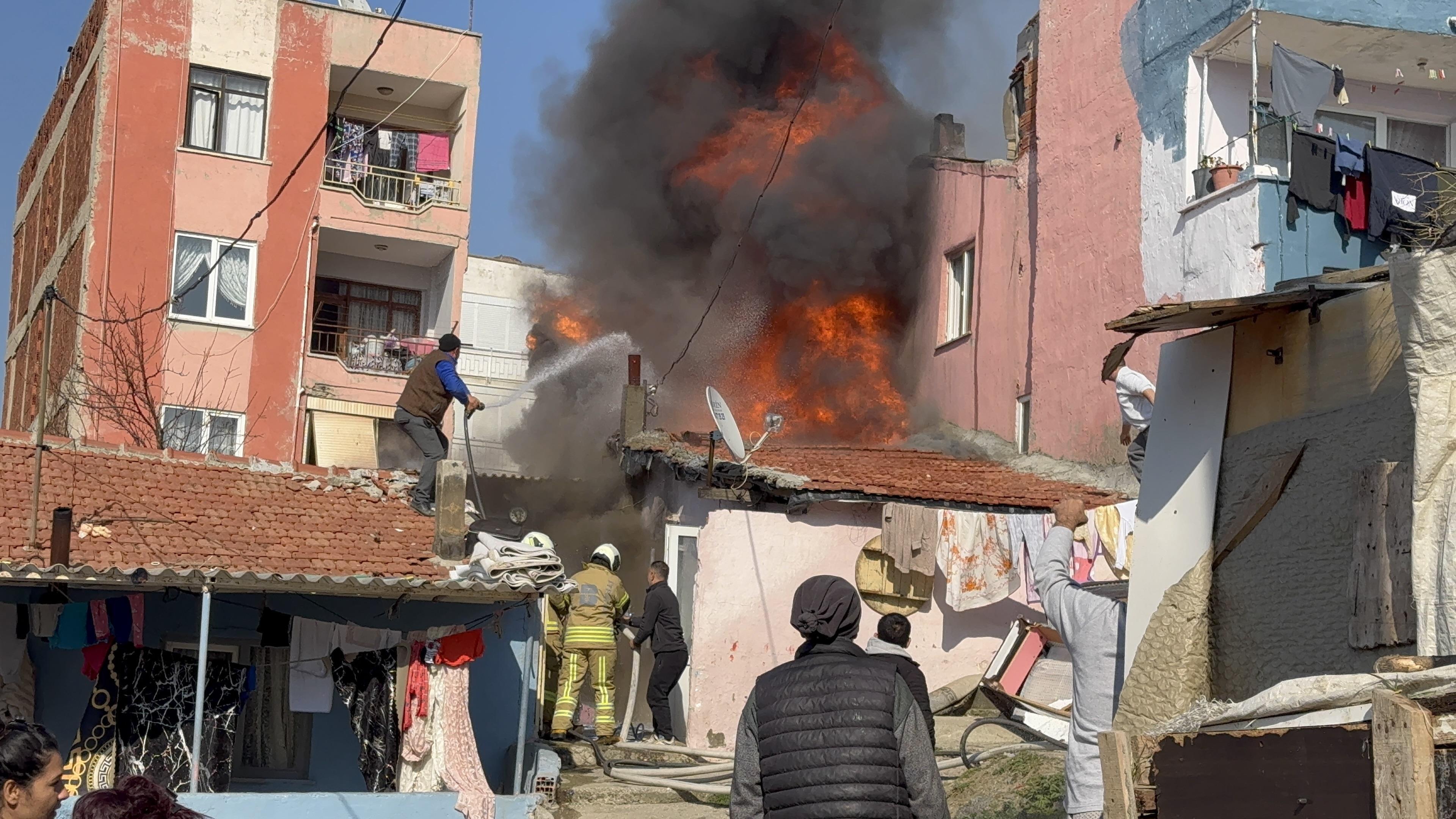 Tek katlı evde çıkan yangına mahalleli hortumlarla su sıkarak itfaiyeye destek verdi