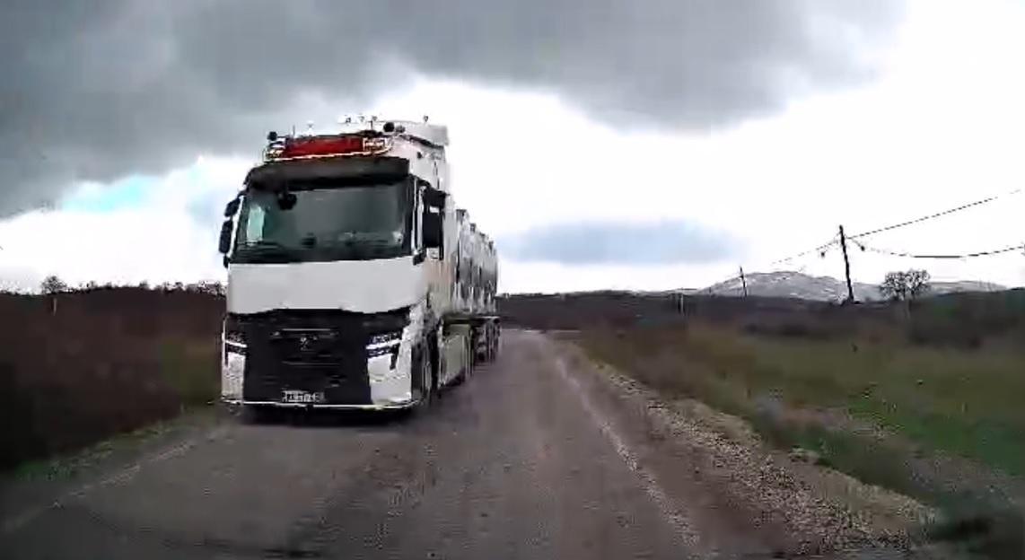 Hatice DAĞLI/ BANDIRMA (Balıkesir), (DHA)- BALIKESİR’in Gönen ilçesinde, kırsal yolda seyir halinde olan süt tankerinin üzerlerine ilerlediği otomobildeki çiftin çığlıkları, araç kamerasına yansıdı.