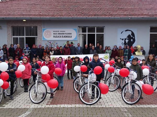 BALIKESİR, (DHA)-BALIKESİR'in Havran ilçesindeki, toplam 100 ilk ve ortaokul öğrencisine bisiklet hediye edildi.Başarıyı İzleme ve Geliştirme Projesi (BİGEP) kapsamında Havran Halil İbrahim Yıldırım Fazlıca İlkokulu ile Prof. Dr. Fuat Sezgin Fen Lisesi'nin birlikte başlattığı 'Bisiklet Dostu Okul' projesi çerçevesinde, ilkokul ve ortaokul öğrencilerine bisiklet dağıtıldı. 'Gülen Yüzlere 100 Bisiklet' sloganıyla gerçekleşen etkinlik Havran Kaymakamı Enver Özderin'in ve İlçe Millî Eğitim Müdürü Hüseyin Aydemir'in öğrencilere bisikletleri hediye etmesiyle başladı. Balonlarla süslenmiş bisikletlerini alan öğrenciler okul bahçesinde ilk sürüşlerini gerçekleştirirken büyük mutluluk yaşadı.