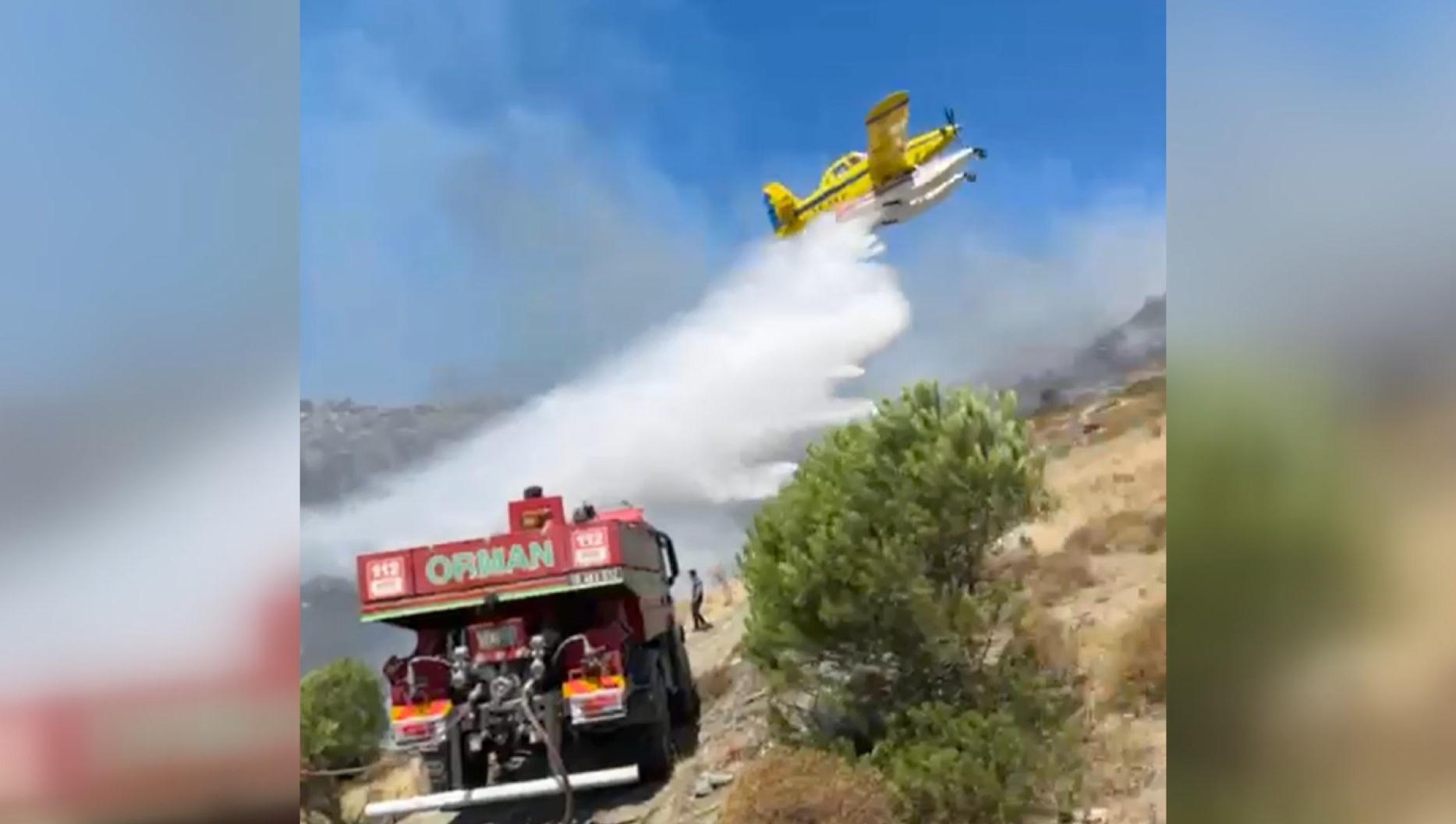 Balıkesir’in Marmara Adası’nda çıkan orman yangınına havadan ve karadan müdahale sürerken, rüzgarın etkisiyle alevlerin Çamlık bölgesine de sıçradığı belirtildi. (DHA)