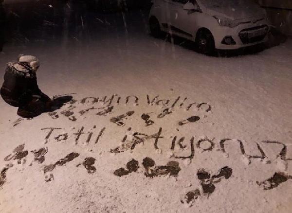 Fatih Emrah ERDOĞAN/BALIKESİR, (DHA)- BALIKESİR'de öğrenciler, karlı zemine "Sayın Valim, tatil istiyoruz" yazıp fotoğrafı sosyal medyada paylaştı. Vali Hasan Şıldak da "Sevgili öğrencilerimizi kırmayalım o zaman" mesajıyla kar tatilini duyurdu.