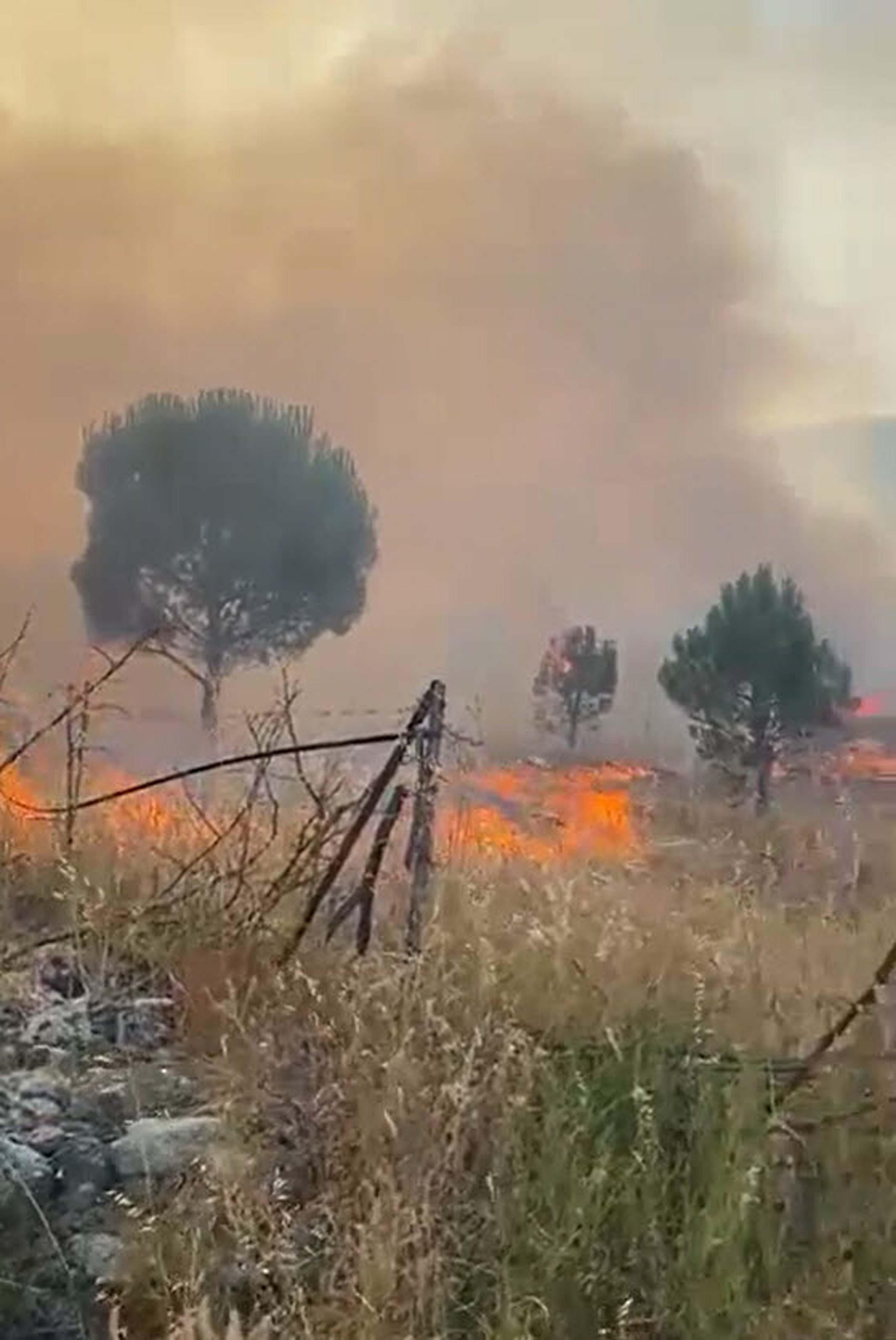 Necip KARATUNA/SINDIRGI (Balıkesir), (DHA)- BALIKESİR'in Sındırgı ilçesinde örtü yangını çıktı. Yangına havadan ve karadan müdahale sürüyor.