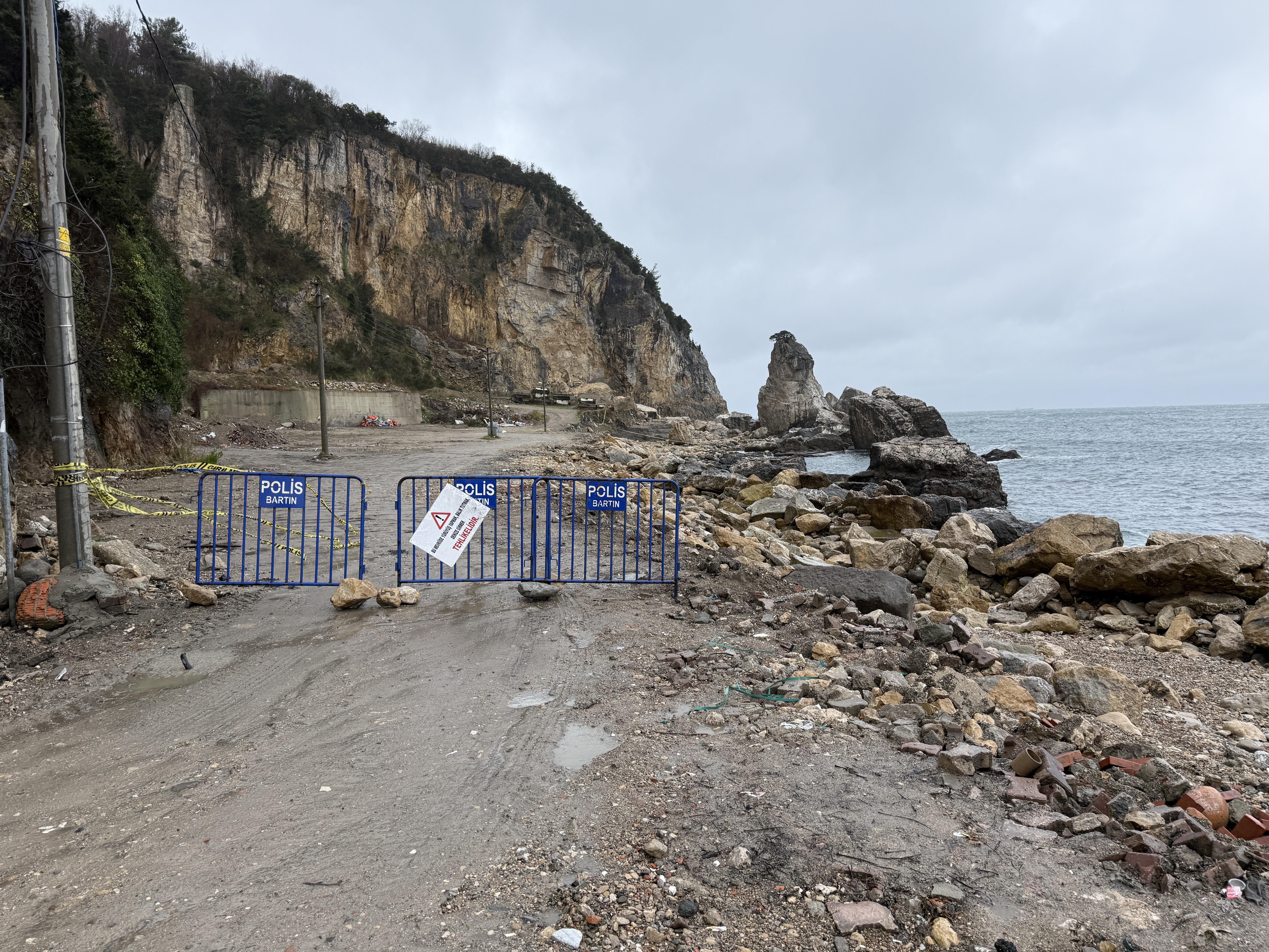 Ayhan ACAR/AMASRA (Bartın), (DHA)- BARTIN'ın Amasra ilçesinde yoğun yağışlar sonrası taş ocağı yanındaki yamaçtan kopan kaya parçaları denize yuvarlandı, güvenlik amacıyla bölgeye giriş bariyerlerle kapatıldı.