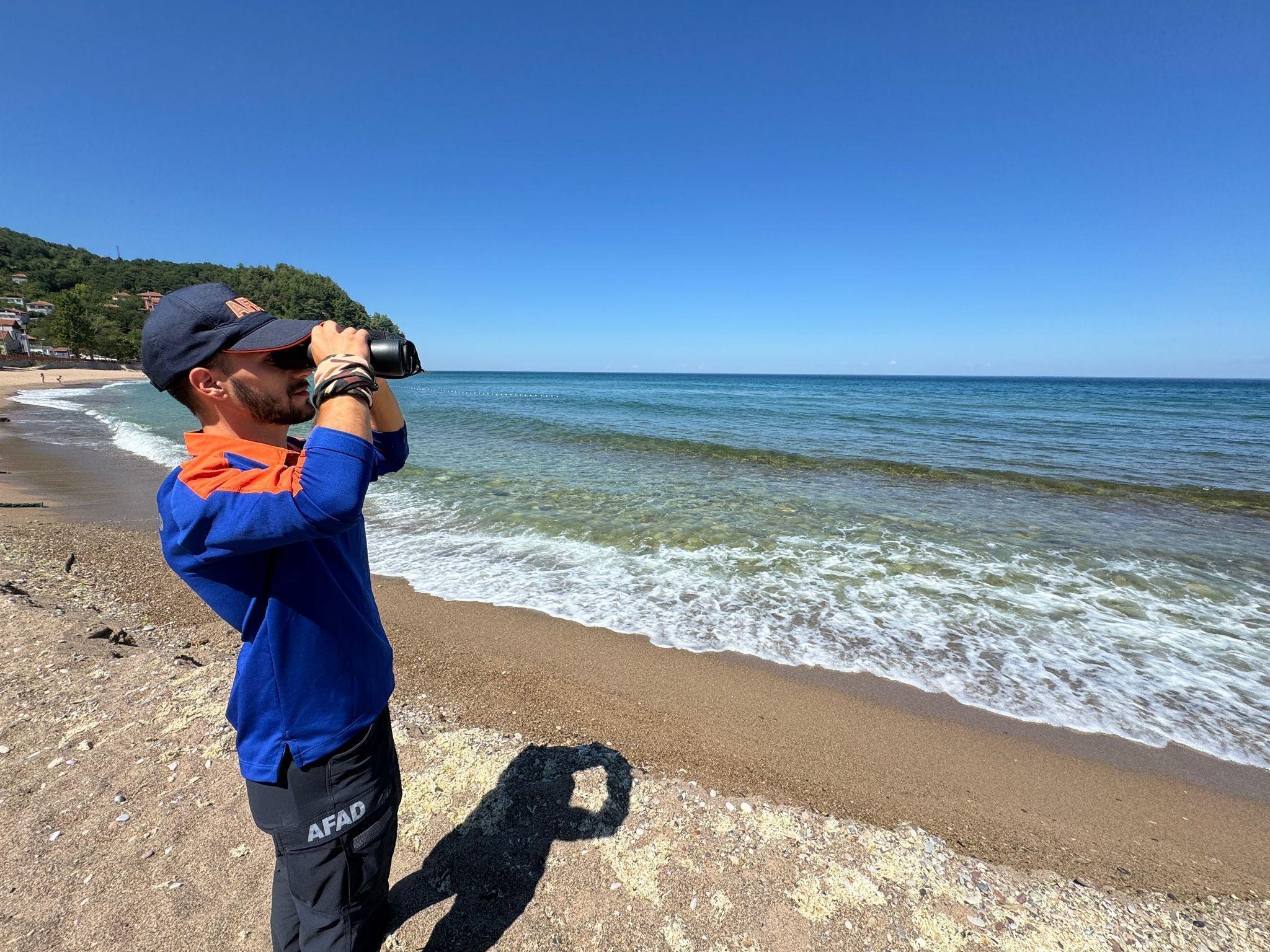 EKİPLER KUMSALDA DÜRBÜNLE DENİZ ÜZERİNİ İZLEDİ