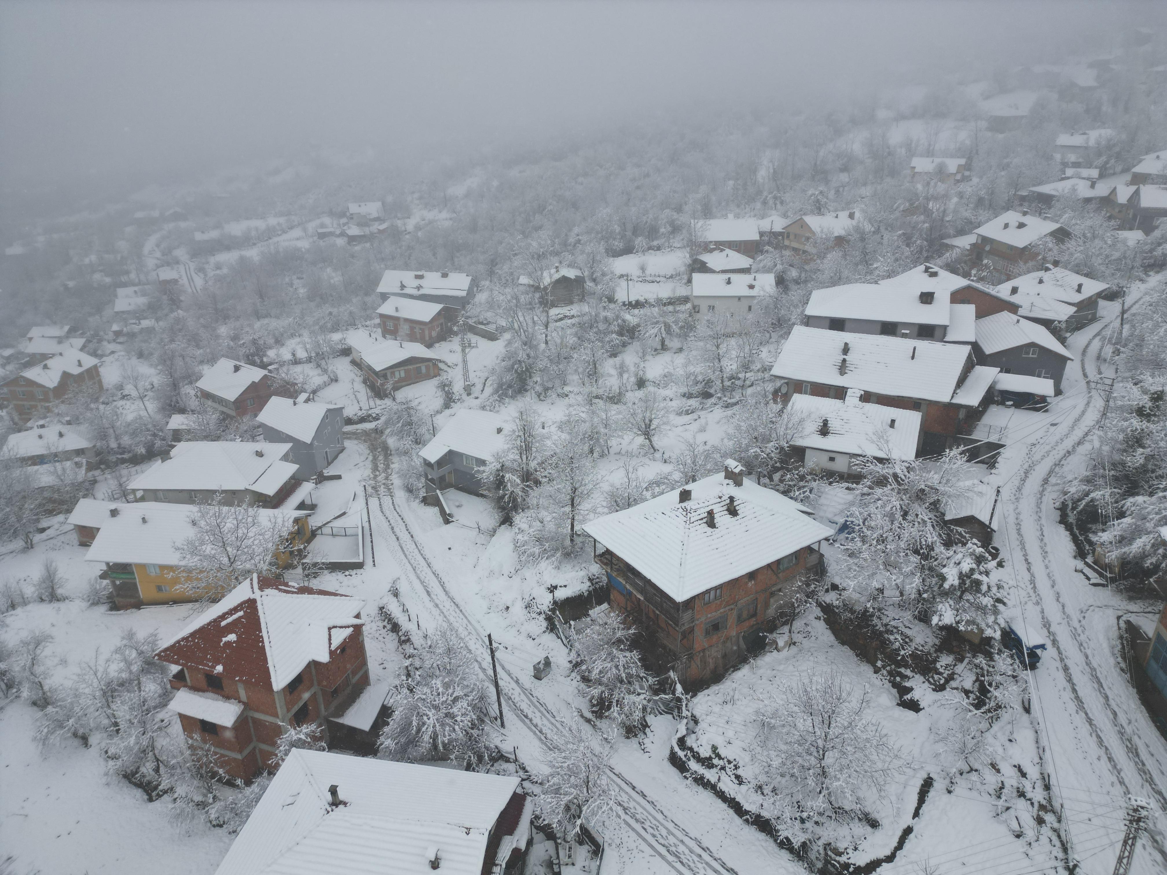 Ayhan ACAR/BARTIN, (DHA)- BARTIN'ın yüksek kesimlerinde kar yağışı etkili oldu. Küre Dağları Milli Parkı'nın eteklerinde bulunan köyler, beyaz örtüyle kaplandı. Kar manzarası dron ile görüntülendi.