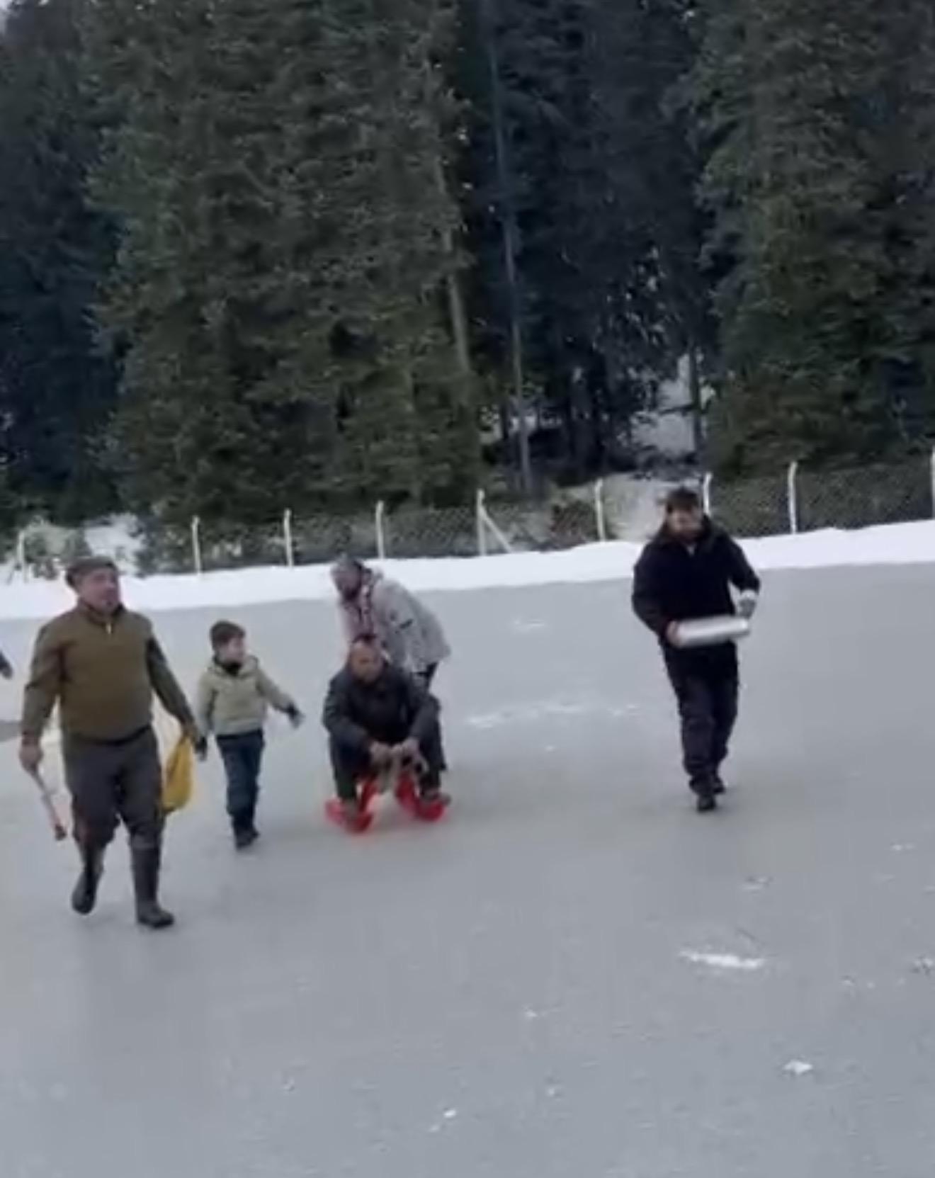 Ayhan ACAR/BARTIN, (DHA)- BARTIN'da, buz tutan Gezen Göleti’nin üzerinde yürüyen gruptan bir kişinin motorlu testereyle buzu kestiği anlar, cep telefonuyla görüntülendi.