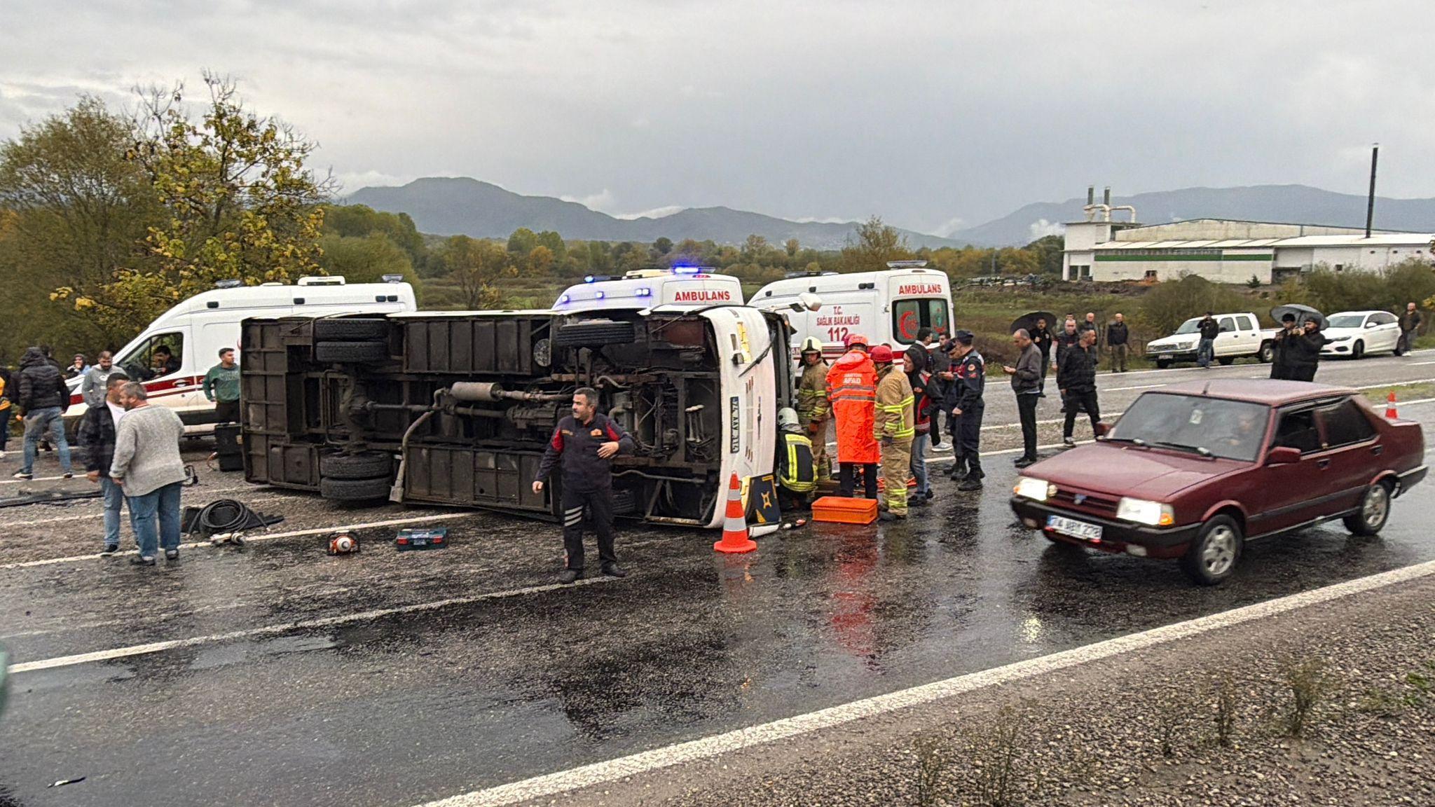 Ayhan ACAR/BARTIN, (DHA)- BARTIN’da tekstil işçilerini taşıyan servis midibüsünün devrildiği kazada Fatma Demircan (49) hayatını kaybetti, 19 kişi yaralandı.
