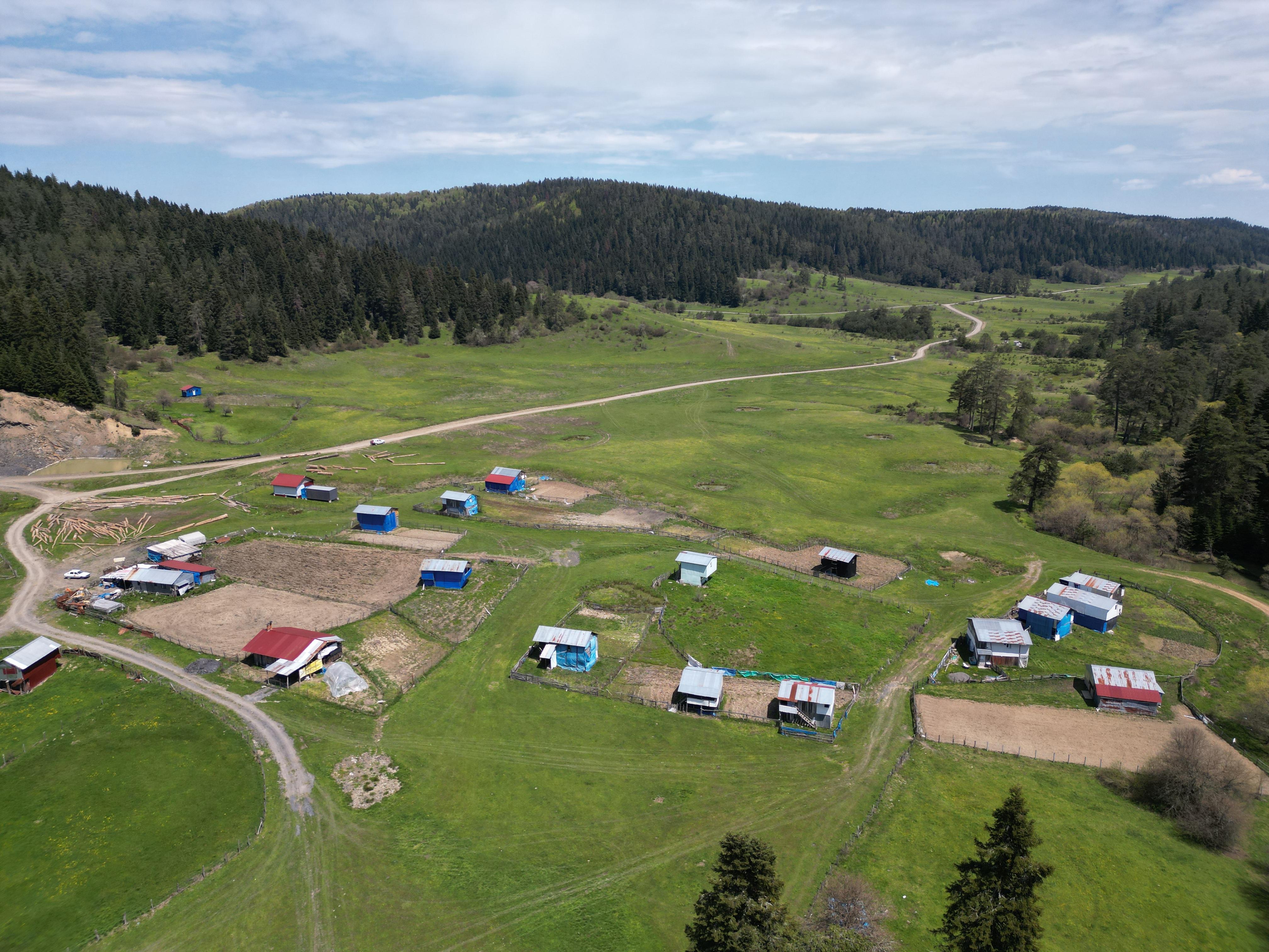 Ayhan ACAR/ULUS (Bartın), (DHA)- BARTIN-Karabük sınırlarında bulunan 86 bin hektarlık alandaki Uluyayla'da ilkbaharla birlikte yeşeren ağaçlarla eşsiz manzaralar ortaya çıktı. 7 kilometre uzunluğundaki yaylada rengarenk evler ve yılkı atları dronla görüntülendi.