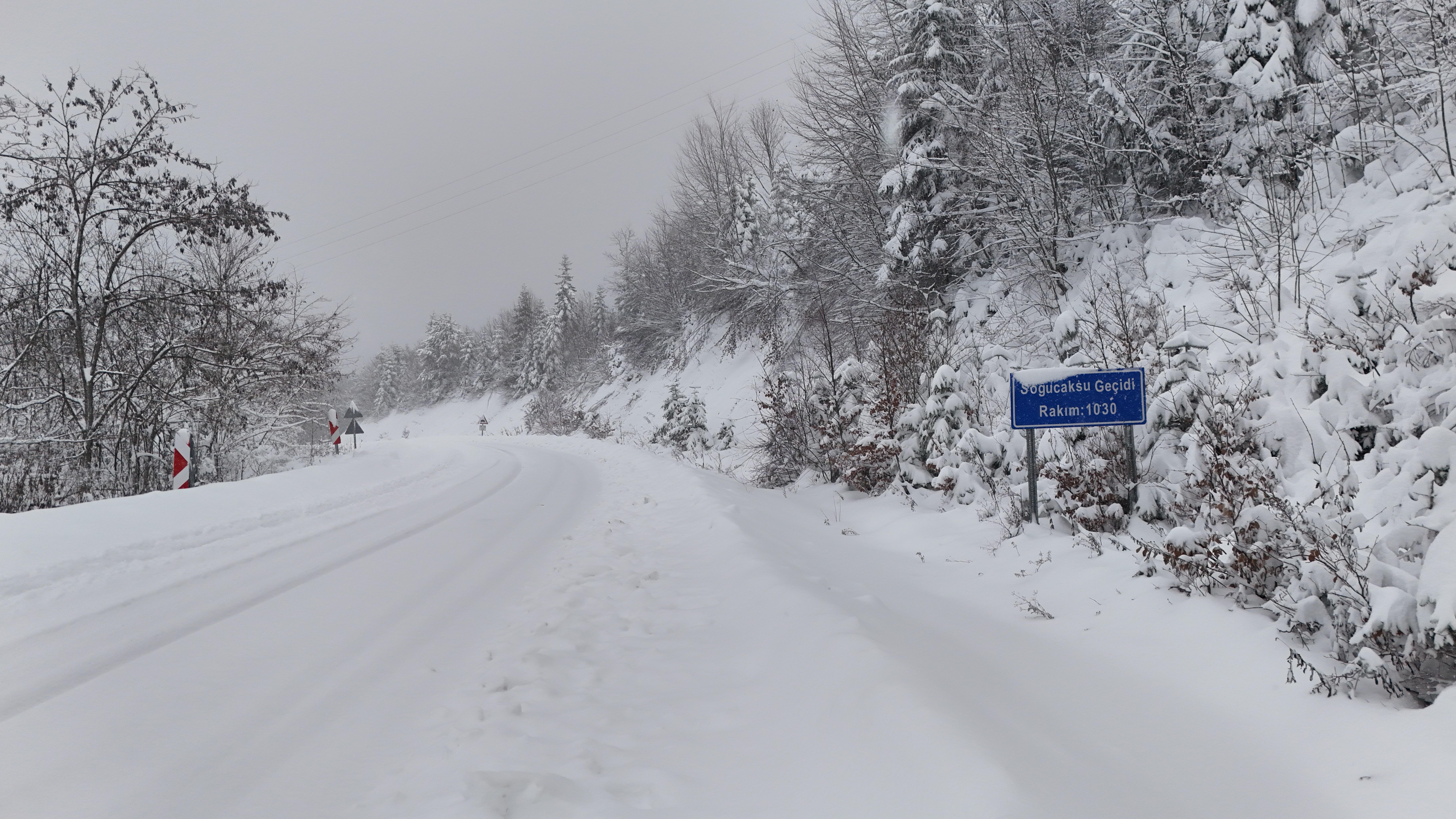 Bartın'ın Ulus ilçesi ile Kastamonu Pınarbaşı ilçesini birbirine bağlayan kara yolunun 1030 rakımdaki Soğucaksu Geçidi’nde kar yağışı etkili oldu. Bölgede kar kalınlığı 40 santime ulaştı. Karayolları ekipleri kar küreme çalışması yaparak yolu ulaşıma açık tuttu. Bölgedeki kar ve sis manzarası, dronla görüntülendi. Soğucaksu Geçidi’ne çocuklarıyla birlikte gelenler beyaz örtünün keyfini doyasıya çıkardı. Kar topu oynayan çocukların aileleri de eksi 5 derece soğukta ısınmak için ateş yaktı.