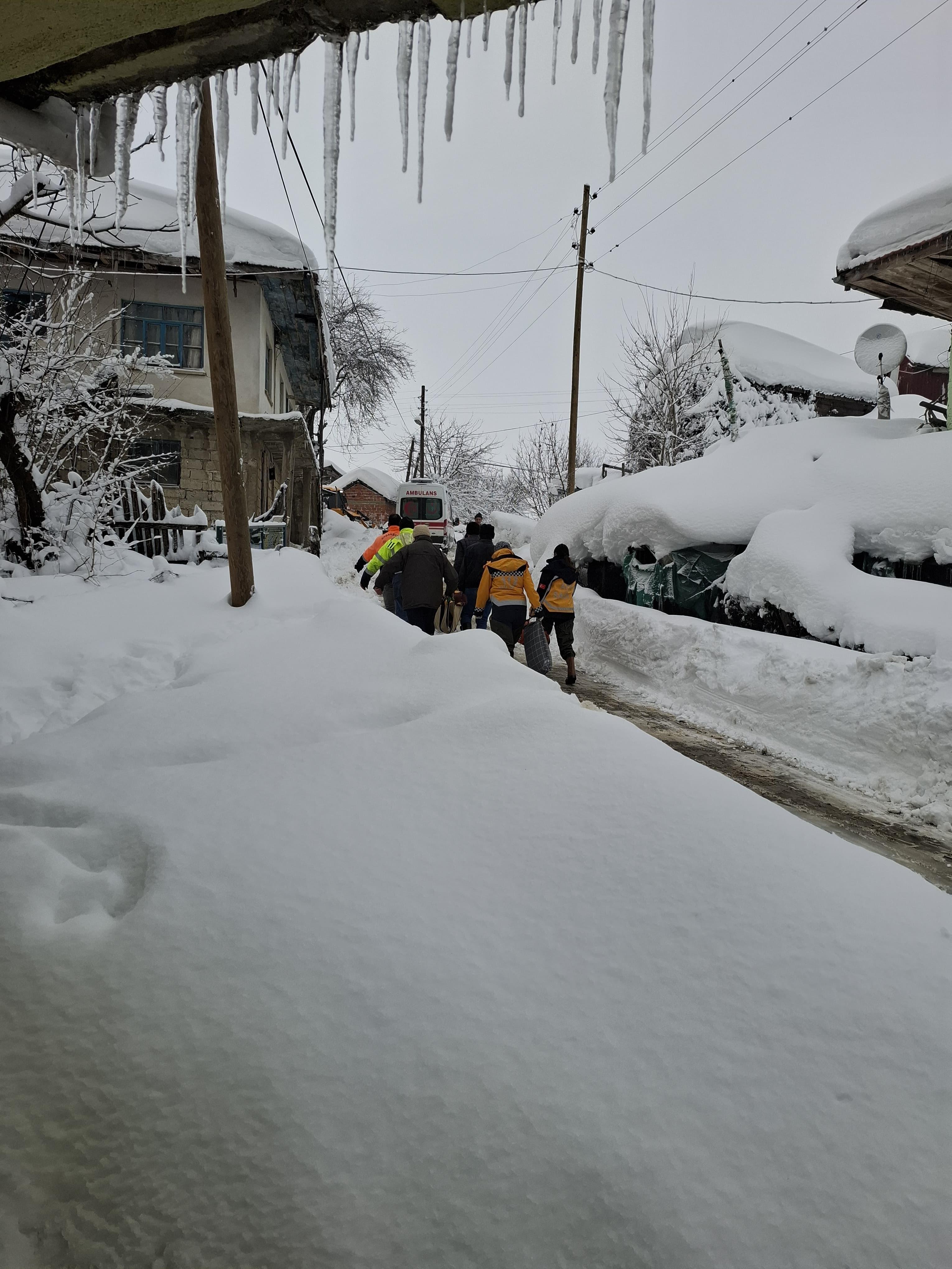 Ayhan ACAR/ULUS (Bartın), (DHA)- BARTIN’ın Ulus ilçesinde, yoğun kar yağışının yaşandığı Dibektaş köyünde rahatsızlanan Mustafa Caymaz (75), iş makineleriyle açılan yola gelen ambulansla hastaneye ulaştırıldı.