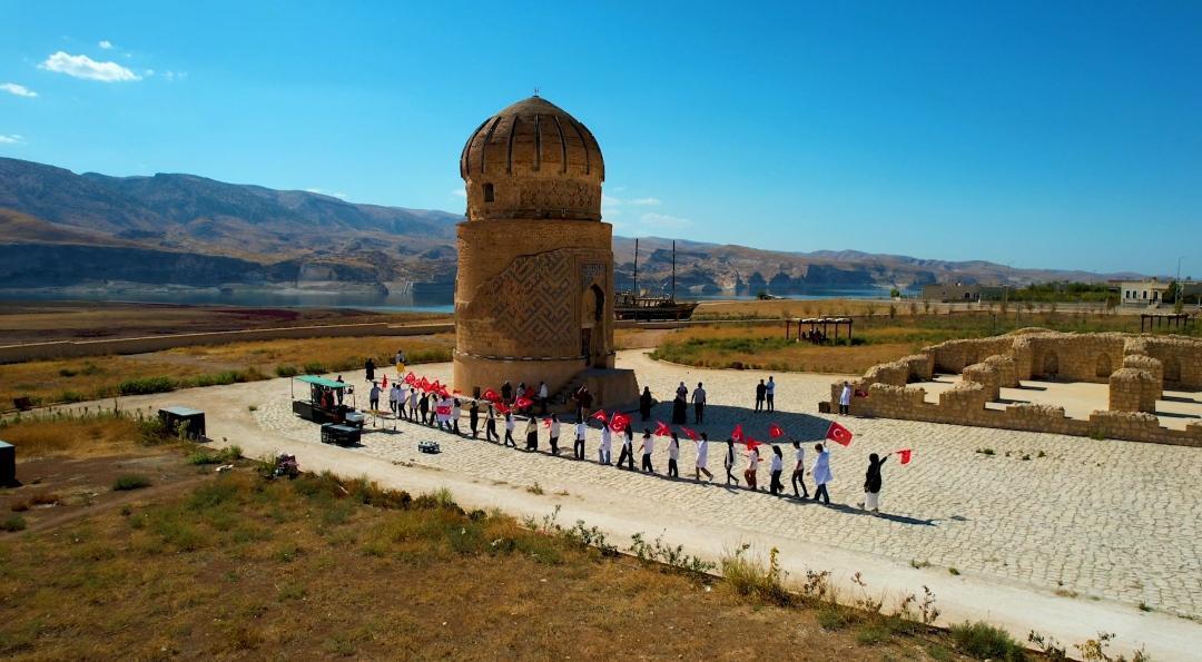 Lise öğrencilerinden tarihi ilçe Hasankeyf'te 102'nci yıl kareografisi