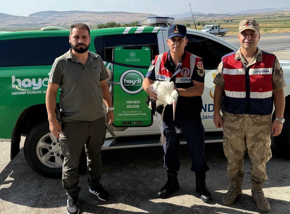 Batman’da jandarmanın yaralı halde bulduğu leylek, tedaviye alındı