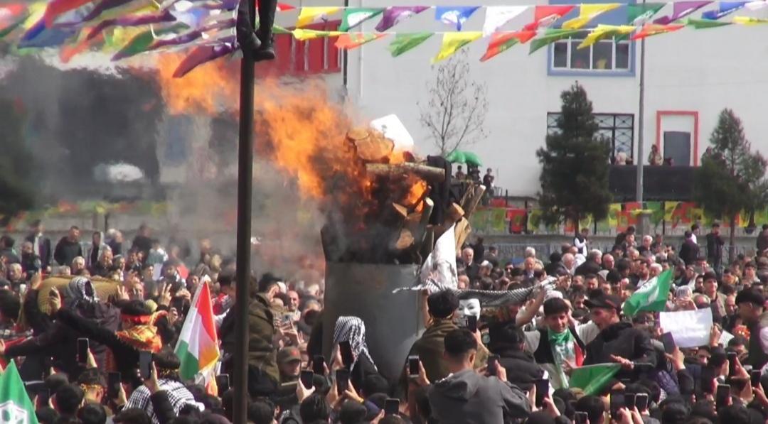 Programa DEM Parti Tunceli Milletvekili Ayten Kordu, İzmir Milletvekili Burcugül Çubuk, Emek Partisi Genel Başkanı Seyit Aslan, yerlerine görevlendirmeler yapılan eski belediye eş başkanları Birsen Orhan ve Cevdet Konak katıldı. Nevruz ateşinin yakılmasıyla bayraklarla süslenen alanda kalabalık, şarkılar eşliğinde halaylar çekti. (DHA)