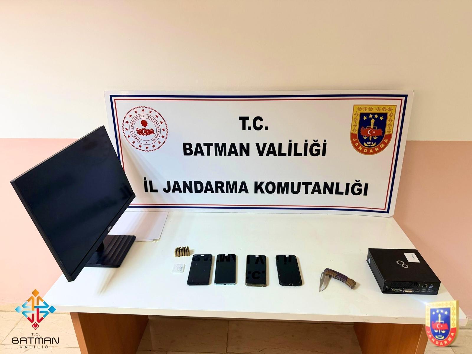 İl Jandarma Komutanlığınca yapılan çalışmalarda, kent merkezinde yasadışı bahis ödeme paneli yönettiği değerlendirilen ve ‘Uyuşturucu imal ve ticareti’ ile ‘6136 sayılı kanuna muhalefet’ suçlarından 12 yıl 11 ay kesinleşmiş hapis cezası bulunan F.T., V.Y. isimli şüpheliyle birlikte kaçmaya çalışırken yakalandı. Yapılan operasyonda 4 cep telefonu, 1 bilgisayar, 1 bıçak ve 17 fişek ele geçirildi. Gözaltına alınan 2 şüpheli jandarmadaki işlemlerinin ardından sevk edildikleri adliyede çıkarıldıkları mahkemece tutuklanarak cezaevine gönderildi. (DHA)