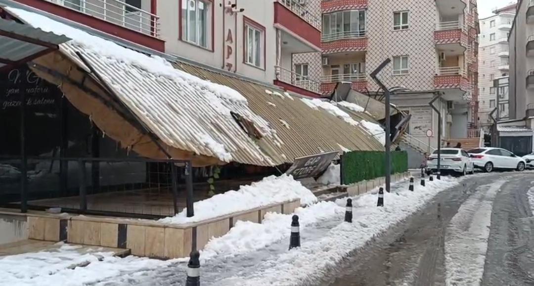 Gap Mahallesi'nde 2504’üncü Sokak'ta bugün öğleden sonra, bir iş yerinin sundurması üzerinde biriken kar nedeniyle çöktü. Olayda yaralanan olmazken, iş yerinde hasar oluştu.