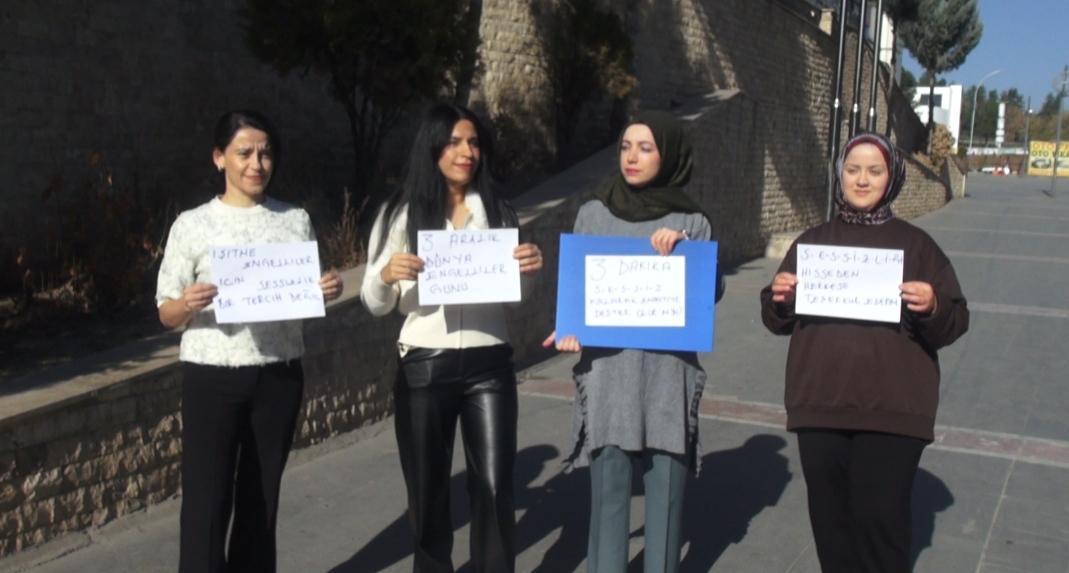 Bayram AYHAN/BATMAN, (DHA)- BATMAN’da, 3 Aralık Dünya Engelliler Günü’nde işitme engellilerin yaşadığı zorluklara dikkat çekmek ve farkındalık oluşturmak amacıyla 3 işitme engelli birey, Turgut Özal Bulvarı’nda 3 dakikalığına sessiz kaldı.