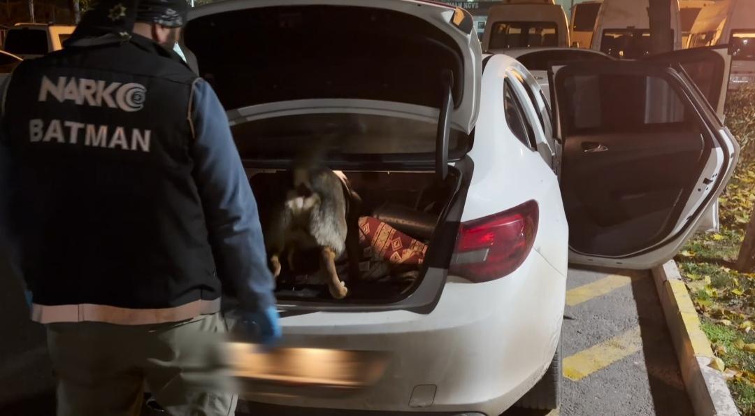 Bayram AYHAN/BATMAN, (DHA)- BATMAN'da polis ekiplerince bir otomobilde narkotik köpeği 'Mailo' ile yapılan aramada bir miktar uyuşturucu madde ele geçirildi. 1 şüpheli tutuklandı.