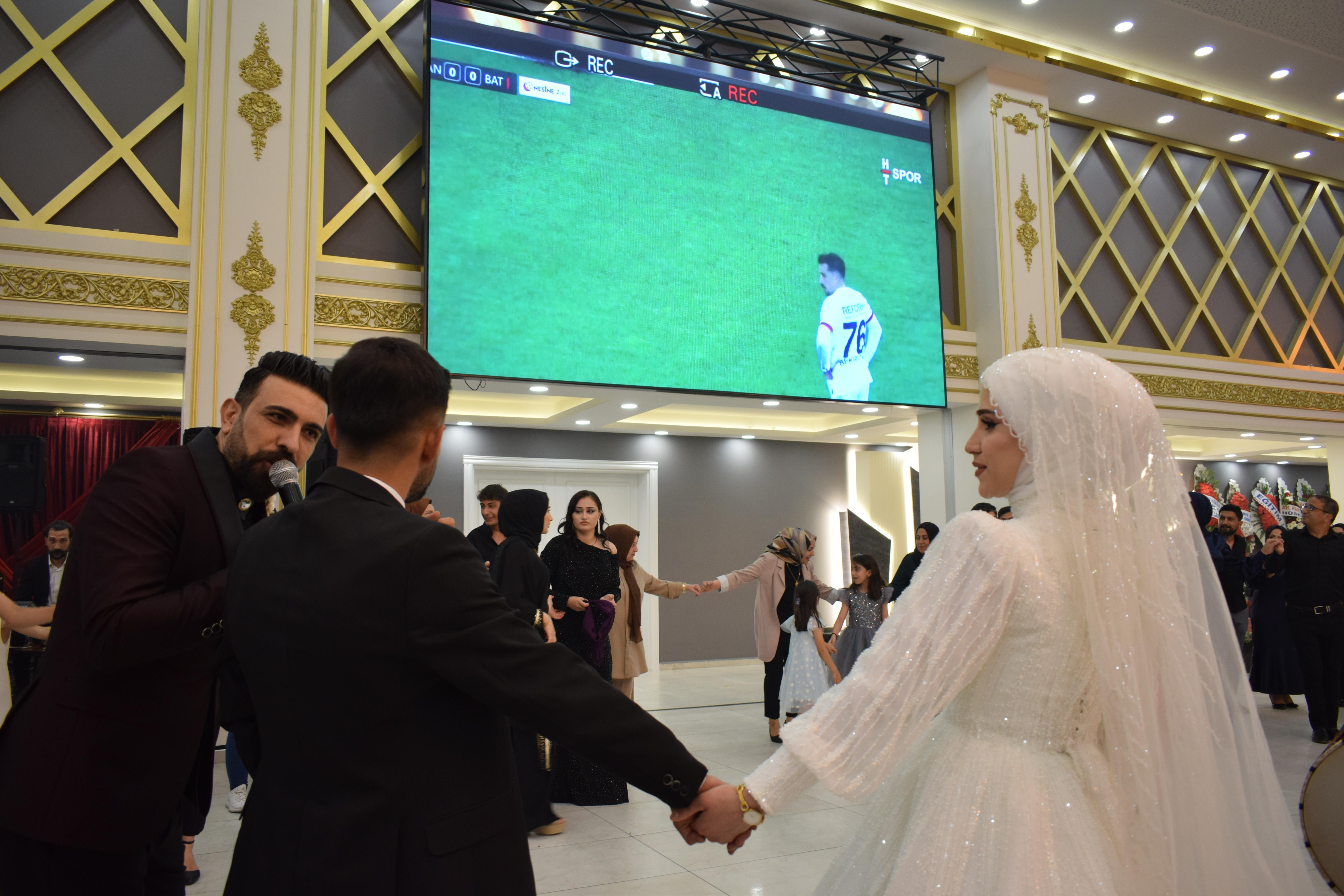 Maç uzatmalara gidince çift, düğünün bitmesiyle salondan ayrıldı. (DHA)