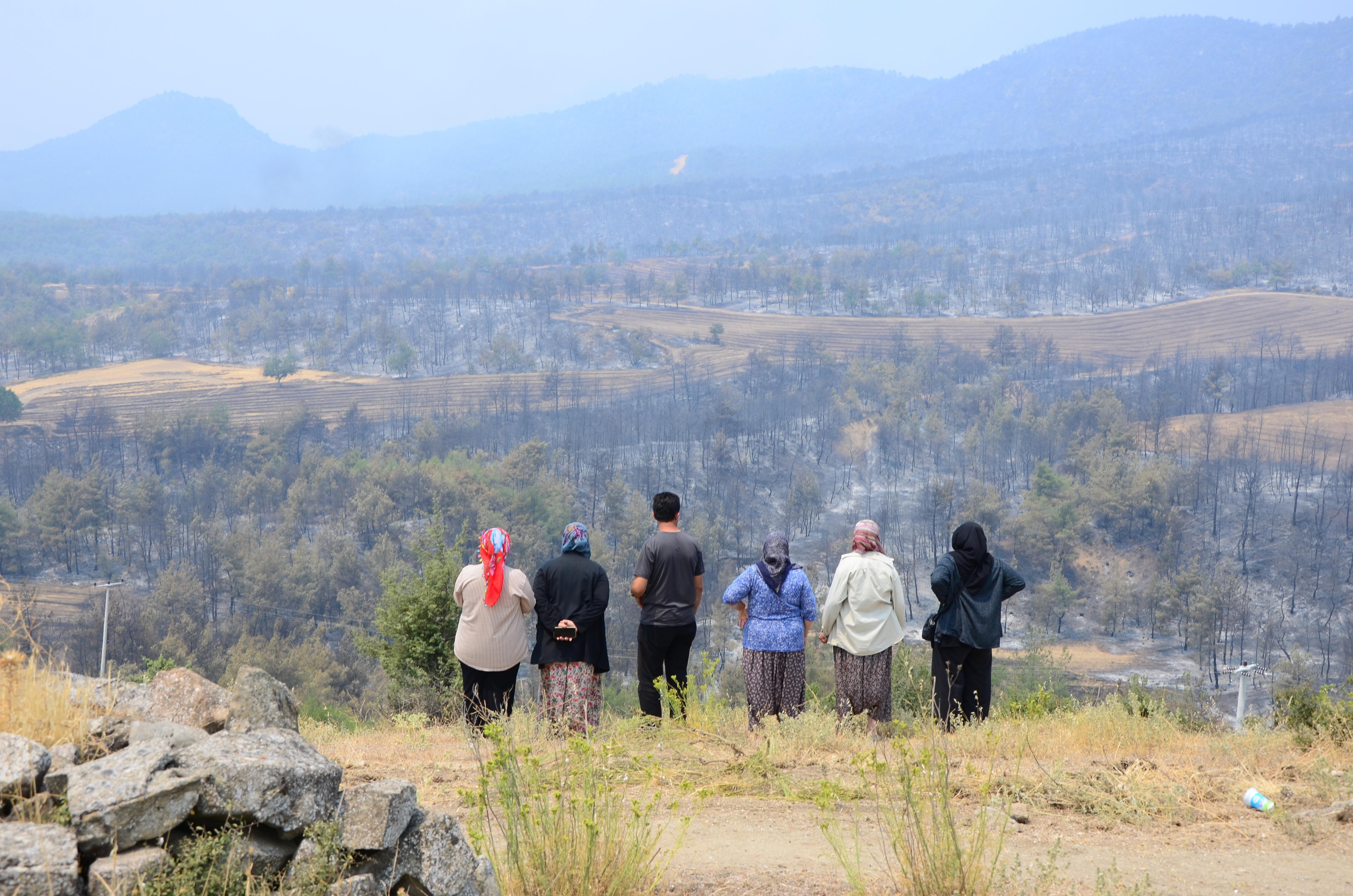 “Ormanlarımız dehşet bir şekilde yandı. Gördüğünüz gibi çok mağdur durumda şu an. Hayvanlarımız da çığlık çığlığa bağırıyorlardı. Şu an bile söndürme çalışmaları için bekliyoruz. Amacımız köyü korumak, yangının yerleşim alanına sıçramamasını sağlamak. Biz burada yerleşim alanını korumak için sınırları bekliyoruz. Küçük kıvılcımları söndürmeye çalışıyoruz. Yanmamış yeşil alana kadar olan kısım sınır, oradan yukarı çıkmaması için çaba gösteriyoruz. Gönüllü olarak köyü korumaya çalışıyoruz.”