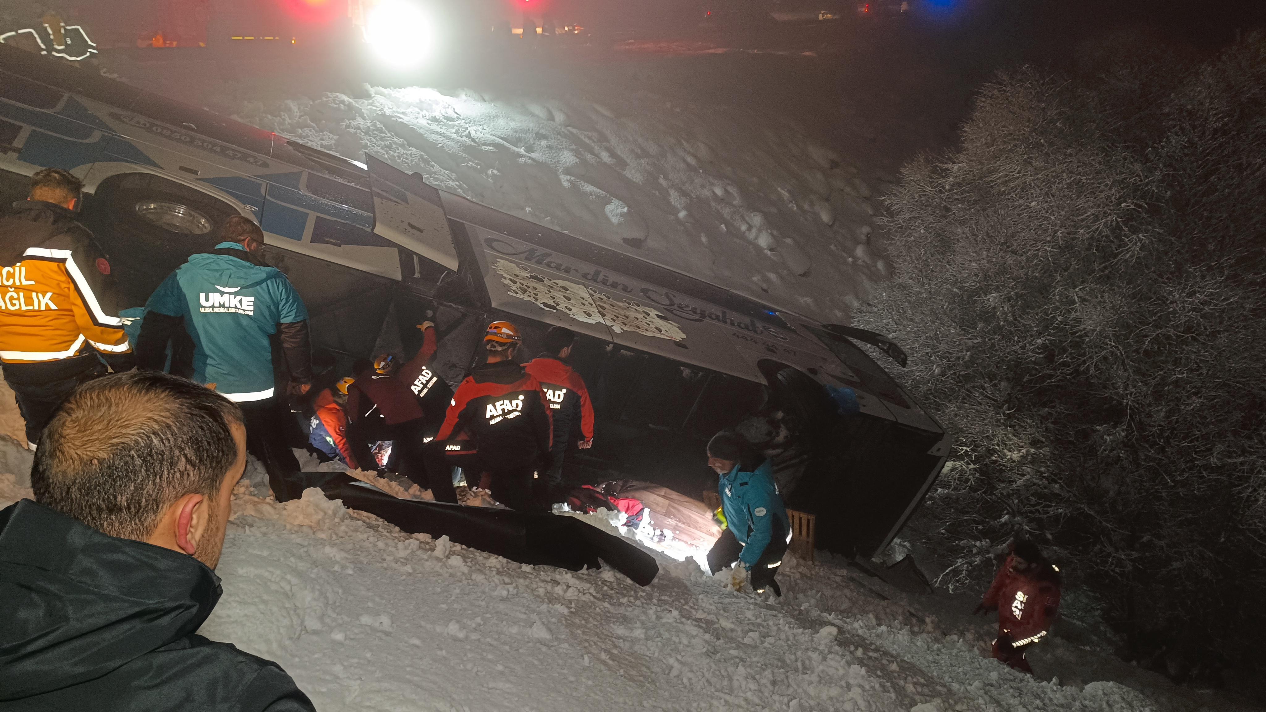 Kaza, dün saat 20.00 sıralarında kar yağışının etkili olduğu Genç ilçesi Doğanca mevkisinde meydana geldi. Şırnak'tan Erzurum'a giden 33 CFU 60 plakalı, Mardin Seyahat'e ait yolcu otobüsü, virajlı yolda buzlanma nedeniyle kontrolden çıkarak şarampole devrildi. Kazada otobüsteki 5 kişi hayatını kaybetti, 38 kişi yaralandı. İhbarla olay yerine sağlık, UMKE, AFAD, itfaiye, polis ve jandarma ekipleri sevk edildi. Yaralılar, ilk müdahalenin ardından Genç ve Bingöl devlet hastanelerine kaldırıldı.