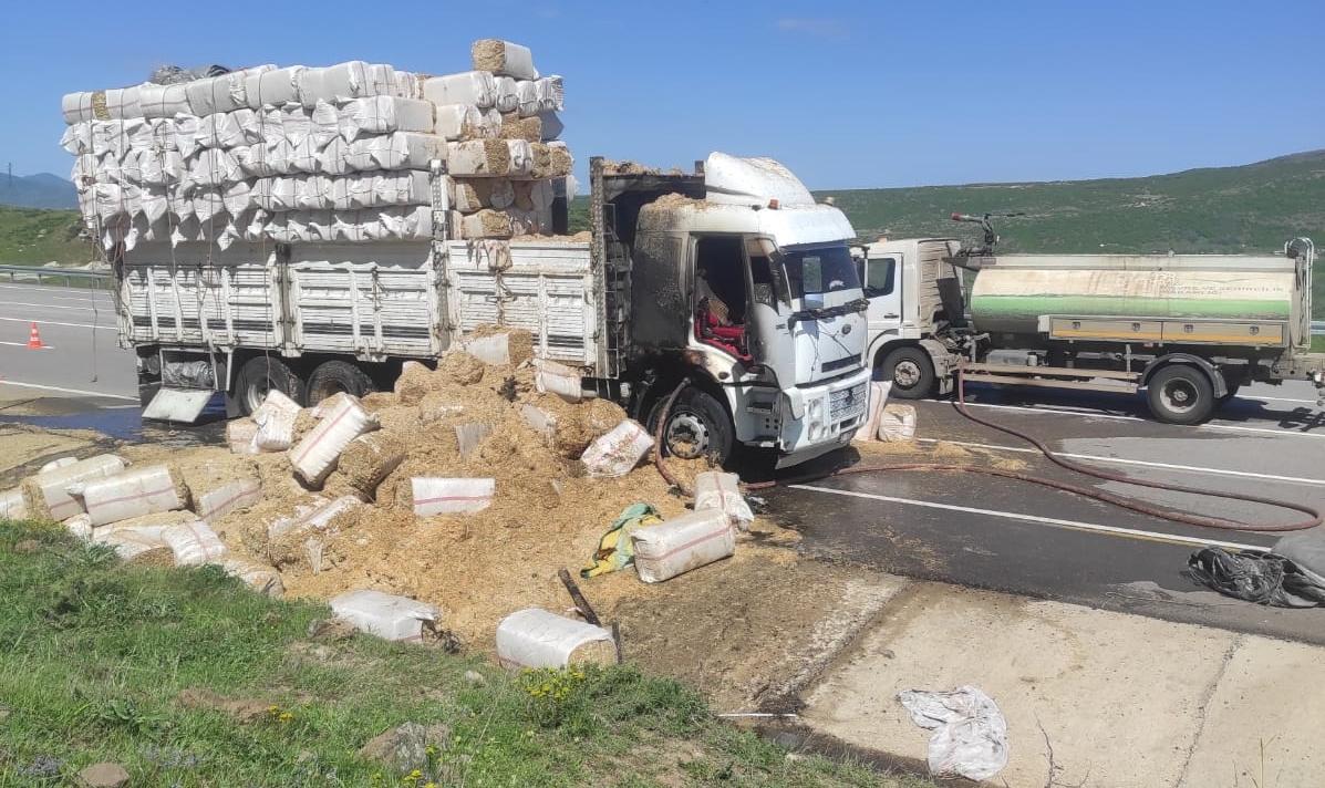 Bülent TEMİZ/KARLIOVA (Bingöl),(DHA)- BİNGÖL’ün Karlıova ilçesinde saman yüklü kamyonda çıkan yangın, itfaiye ekiplerinin müdahalesiyle kontrol altına alınarak söndürüldü.