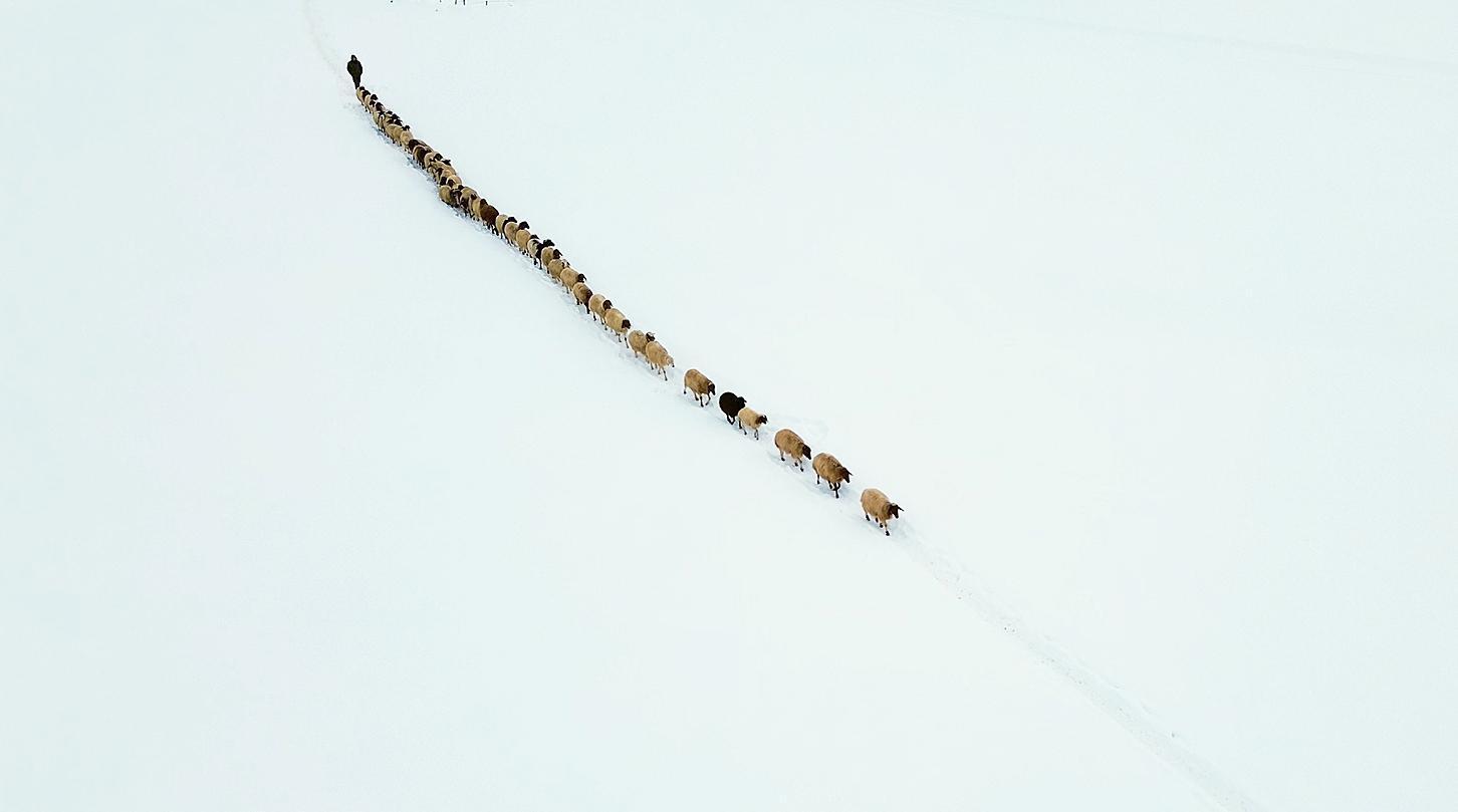 Karlıova’da besiciler, geçim kaynakları olan hayvanlarını ahırlarda ve açık alanlarda yemleyip sulayarak kış mesaisine devam ediyor. İlçede karla kaplı arazide tek sıra halinde ilerleyen büyükbaş ve küçükbaş hayvanların oluşturduğu görüntüler dronla kayda alındı. Görüntülerde, hayvanların kar üzerindeki yürüyüşü ve besicilerin günlük bakım çalışmaları yer aldı. (DHA)