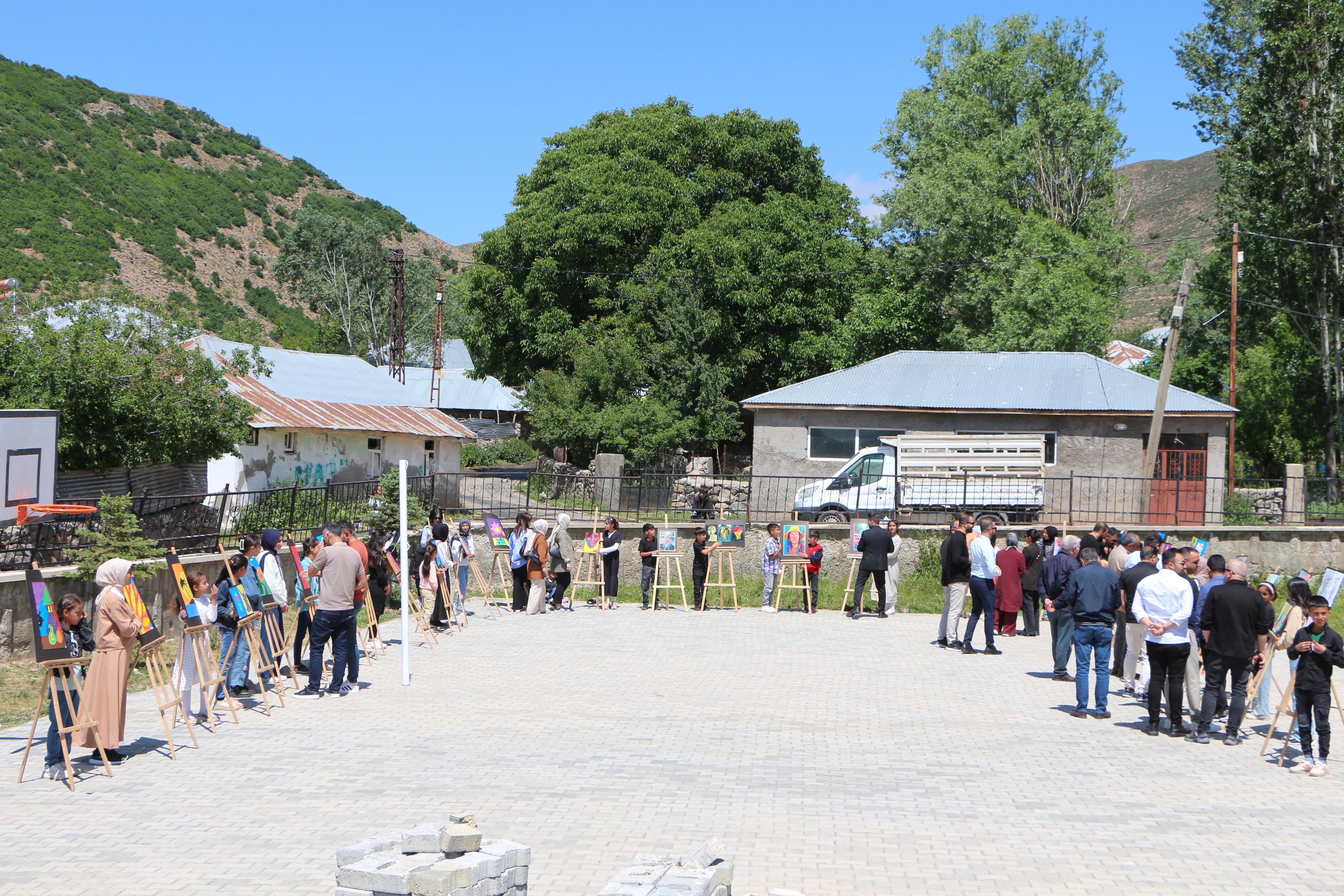 Bülent TEMİZ/KARLIOVA (Bingöl),(DHA)- BİNGÖL’ün Karlıova ilçesine bağlı Taşlıçay köyünde ortaokul öğrencileri, yıl boyunca yaptıkları resimleri sergiledi.