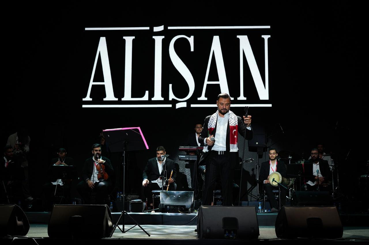 Gazze'de yaşanan soykırıma da tepki gösteren Alişan, Gazzeliler için 'Dünyadan Uzak' isimli şarkıyı söyledi. Filistin bayrağının olduğu atkı takarak konserine devam eden Alişan, "Her konserimde söylüyorum. Yıkılasın İsrail, enkazını göreyim. Sana, ülke diyenin yüzüne tüküreyim. İnşallah siyonist rejim ve İsrail diye bir ülke kalmaz" diye konuştu. (DHA)