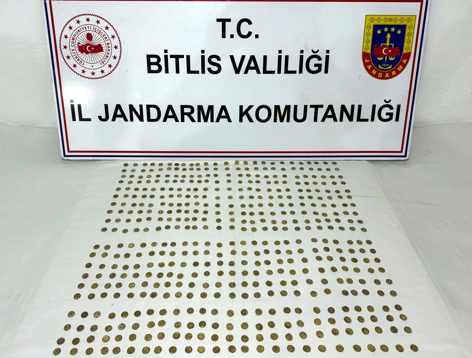 Özcan ÇİRİŞ/ BİTLİS, (DHA)- BİTLİS'in Adilcevaz ilçesinde jandarma ekiplerince durdurulan otomobilde Roma dönemine ait olduğu değerlendirilen 500 adet sikke ele geçildi, 3 şüpheli gözaltına alındı.