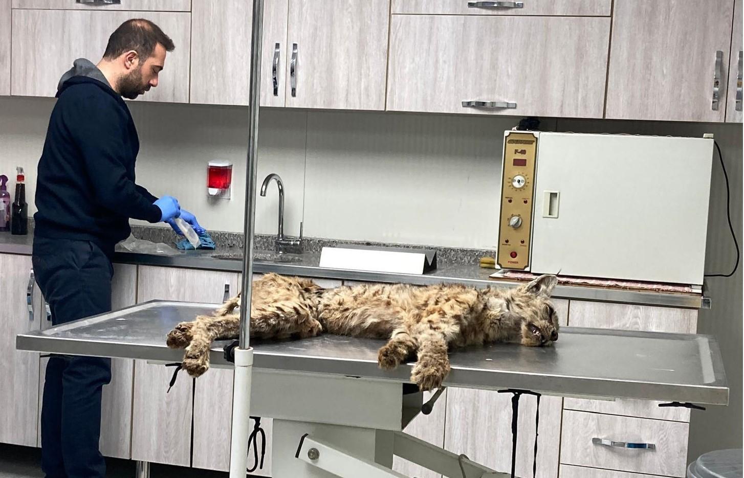 Bitlis'te bitkin halde bulunan vaşak, tedavi için Van'a gönderildi