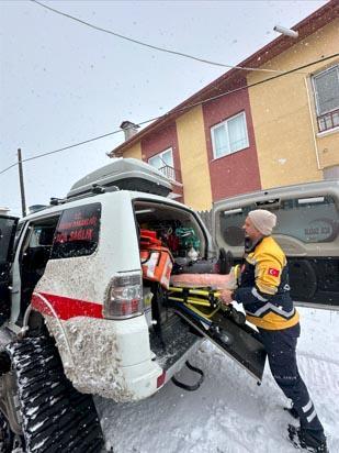 Mutlu YUCA/GEREDE (Bolu), (DHA)- BOLU’nun Gerede ilçesinde kar yağışı nedeniyle yolu kapanan Bahçedere köyünde düşüp, ayağı kırılan Feriha Cansever (58) sağlık ekipleri tarafından paletli ambulansla evinden alınıp, hastaneye kaldırıldı.