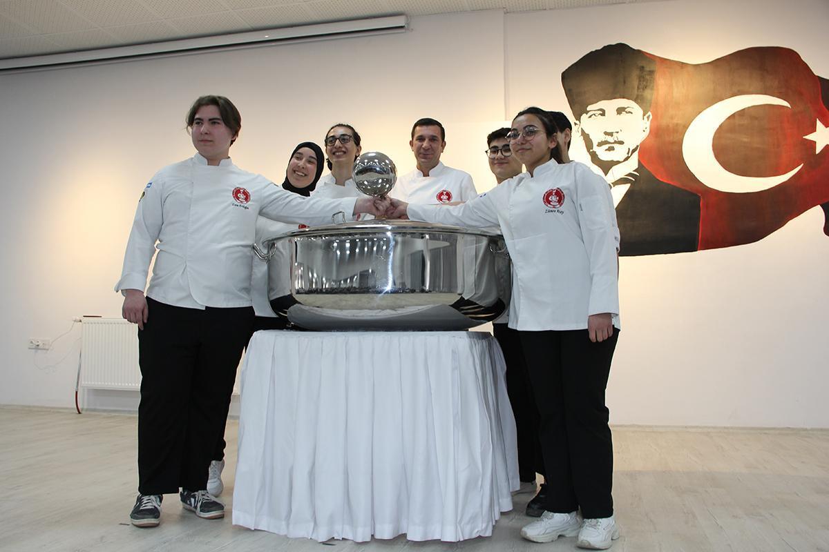 Aşçı andı okunduktan sonra, son sınıf öğrencileri alt sınıf öğrencilerine kepçelerini teslim etti. Törene katılanlara, Mengen pilavı, döner ve lokma ikram edildi. (DHA)