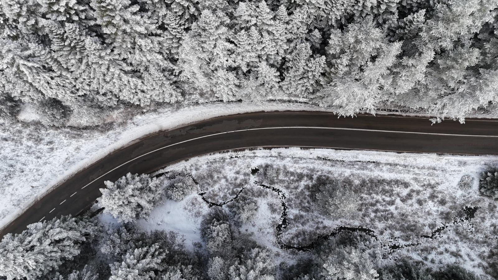 Mutlu YUCA-Zübeyde ÖZMENBOLU, (DHA)- BOLU’da Gölcük Tabiat Parkı'nı çevreleyen çam ormanları ile Aladağ mevkisindeki karla kaplı alanlar dron ile görüntülendi.
